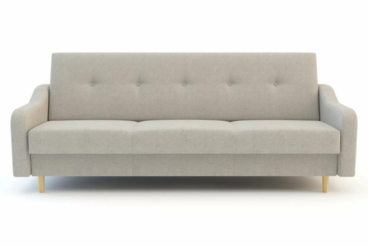 - wersalka jest tapicerowana strukturalną tkaniną LINEA w odcieniu koloru beżowego. Tkanina LINEA imituje len, dzięki czemu prezentuje się bardzo naturalnie;