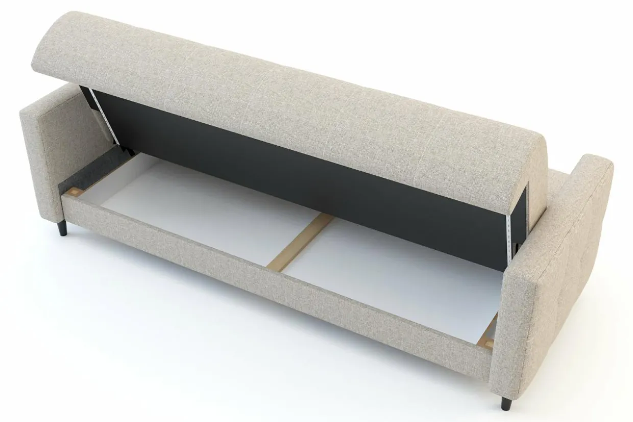 Przestronny schowek na pościel, położony jest pod siedziskiem wersalki.