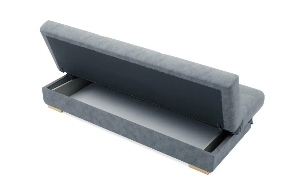 Pod siedziskiem znajdziemy pojemnik na pościel.