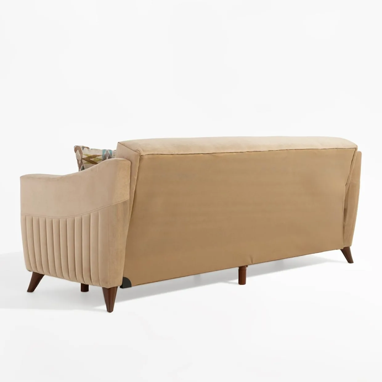 Eleganckie przeszycia i wysokie nóżki sprawią, że wersalka TRUVA odnajdzie się w aranżacji w stylu retro.