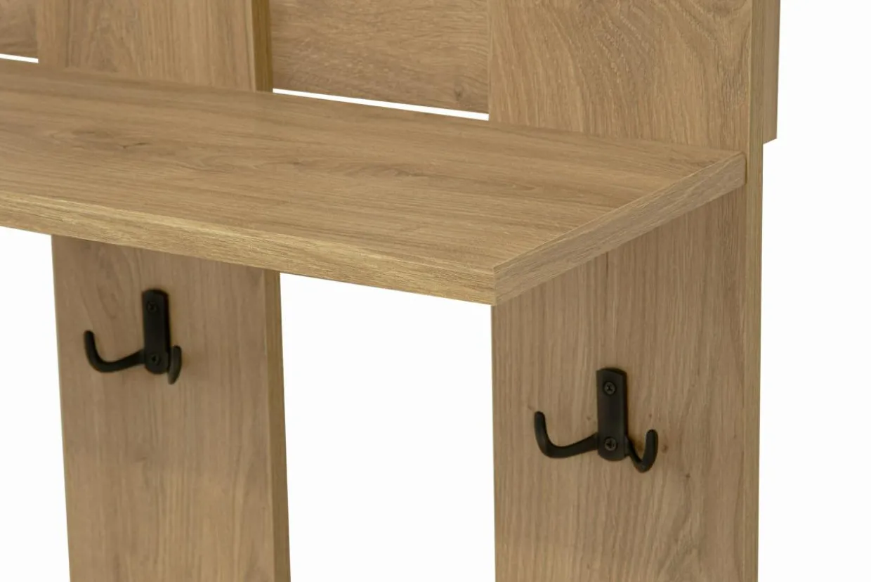 - Wieszak wykonany jest z płyty meblowej pokrytej laminatem. Dzięki temu nie będziesz mieć problemu z utrzymaniem go w czystości.