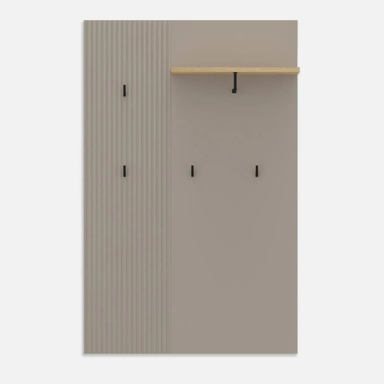- Ryflowane fronty w kolorze taupe idealnie zgrywają się z korpusami. Wykończone są laminatem i folią.