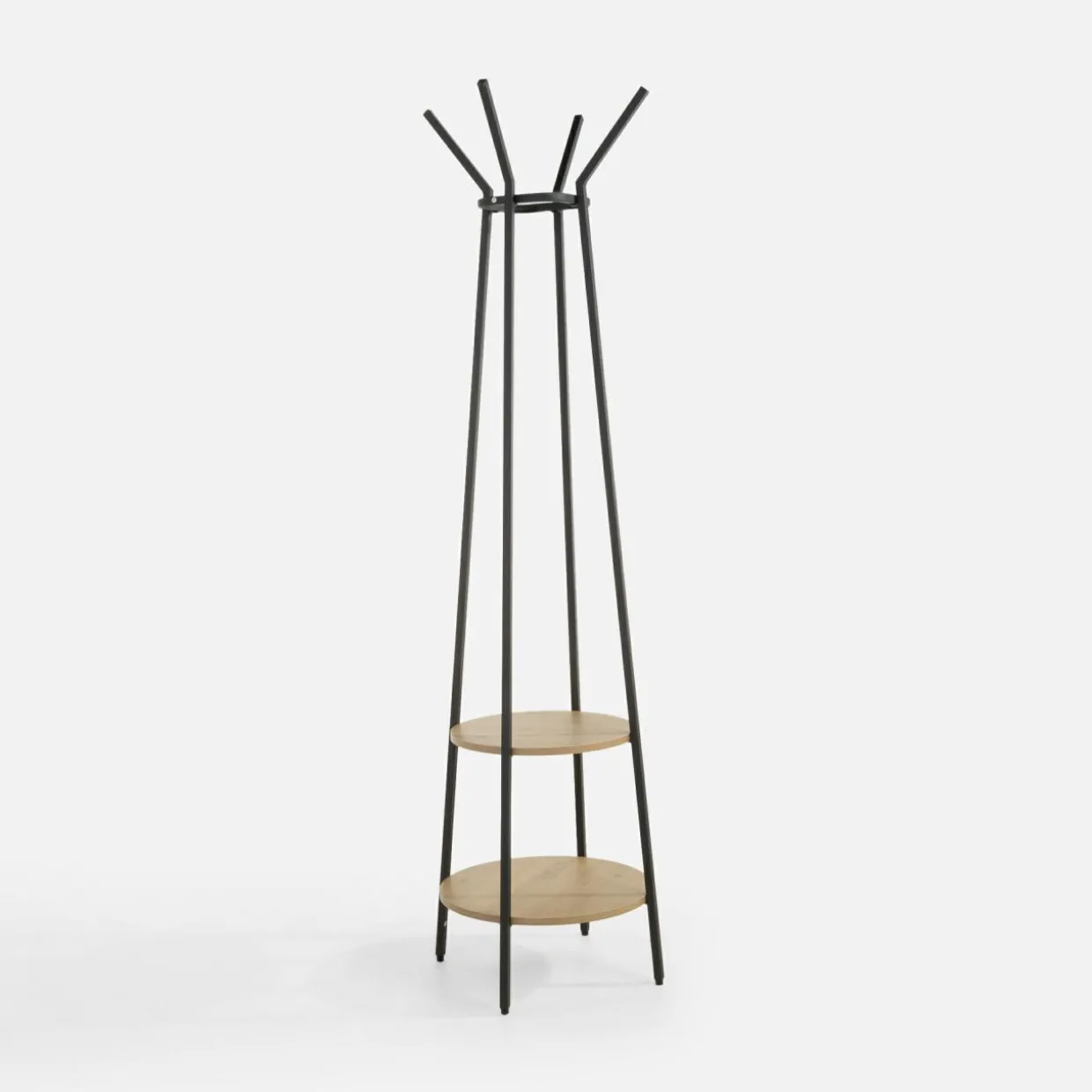Wieszak z półkami LINSEN to praktyczny i przestronny mebel, który zapewnia dodatkową przestrzeń do przechowywania ubrań oraz akcesoriów. Dodatkowe półki umożliwiają przechowywanie torebek czy innych przedmiotów.
