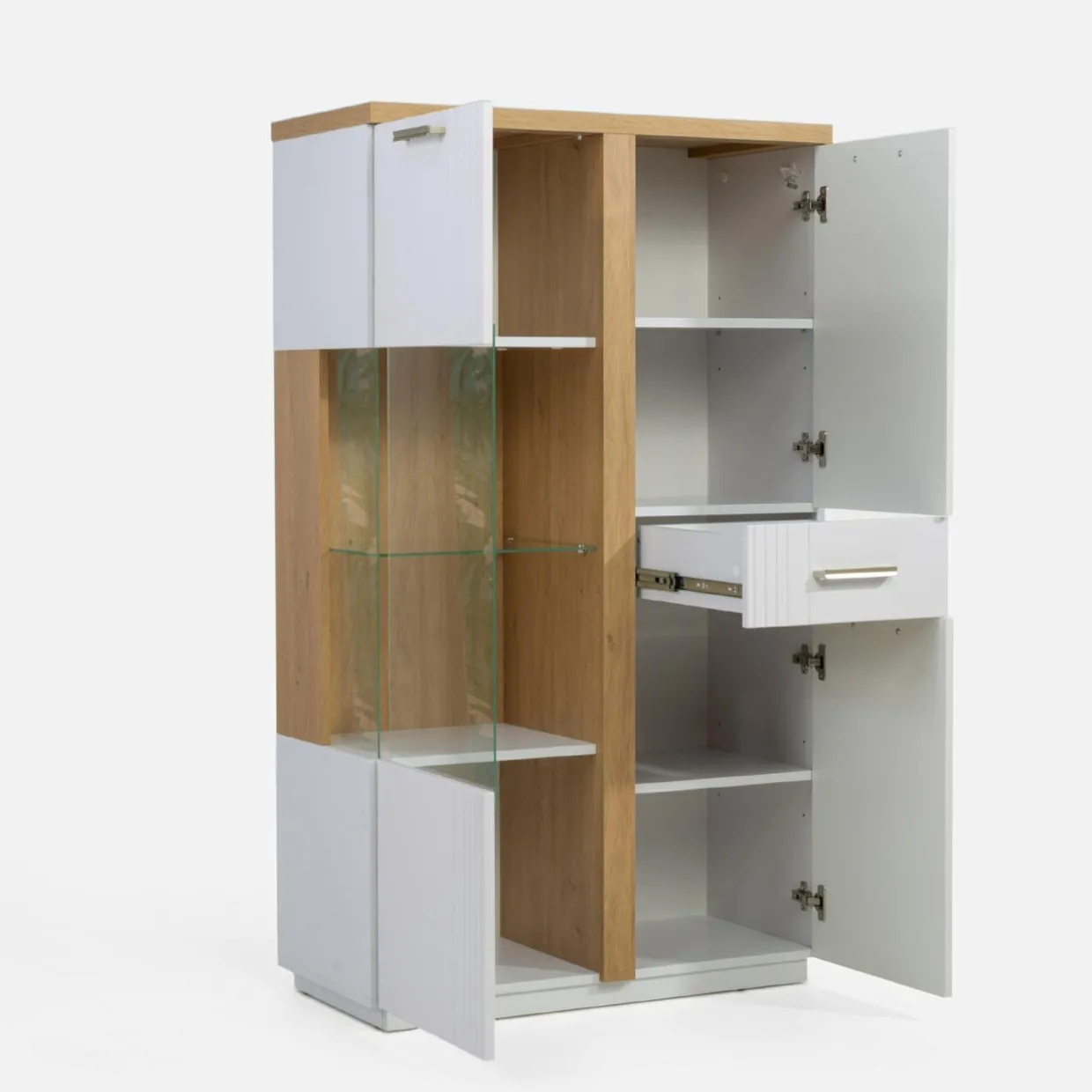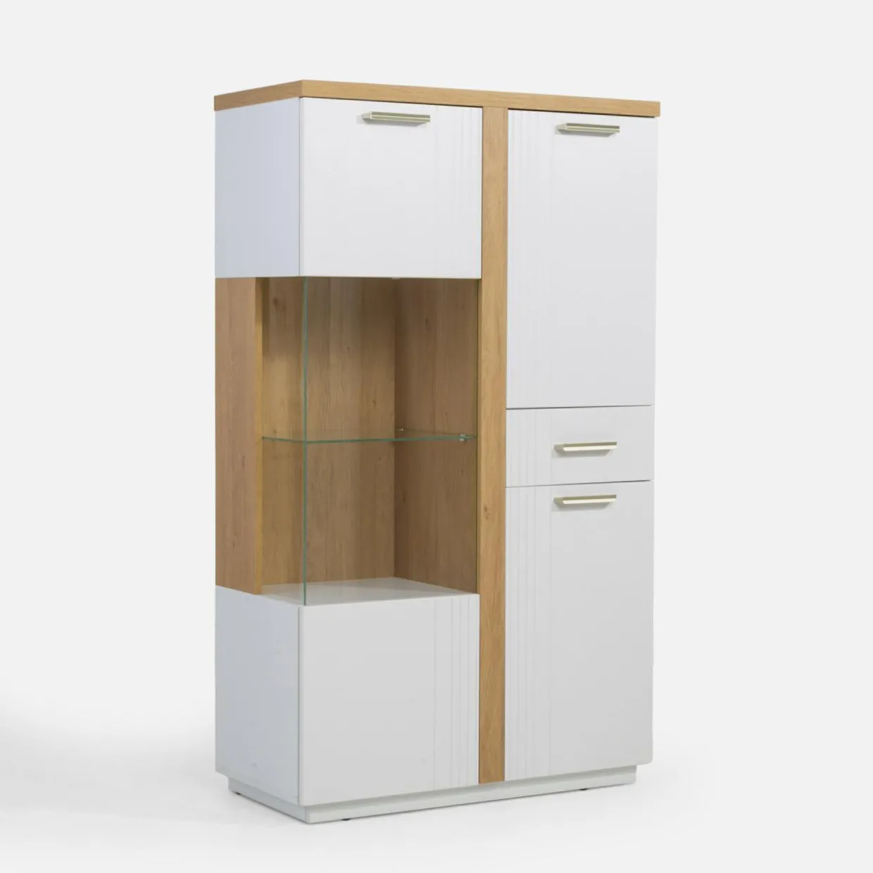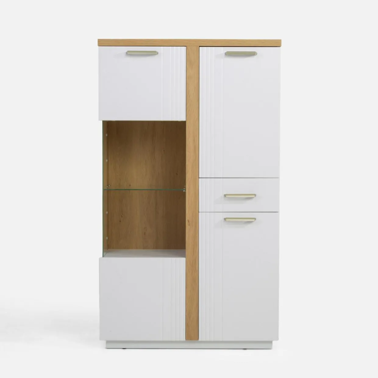- Przeszklona półka to perfekcyjna przestrzeń na umieszczenie Twoich szałowych filiżanek czy kultowych książek.