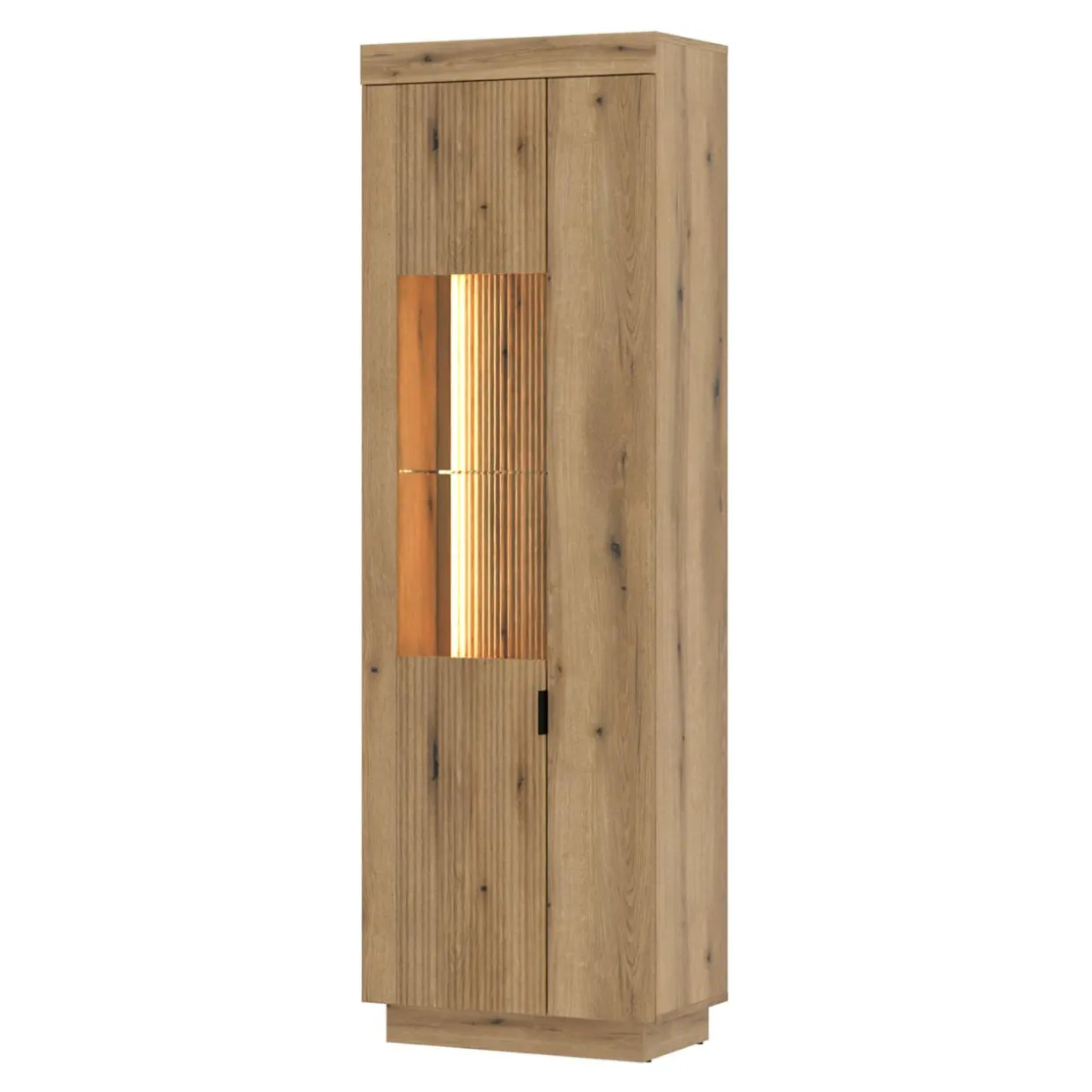 - Witryna posiada w zestawie oświetlenie o ciepłej barwie. Subtelne światło stworzy w salonie prawdziwą wystawę.