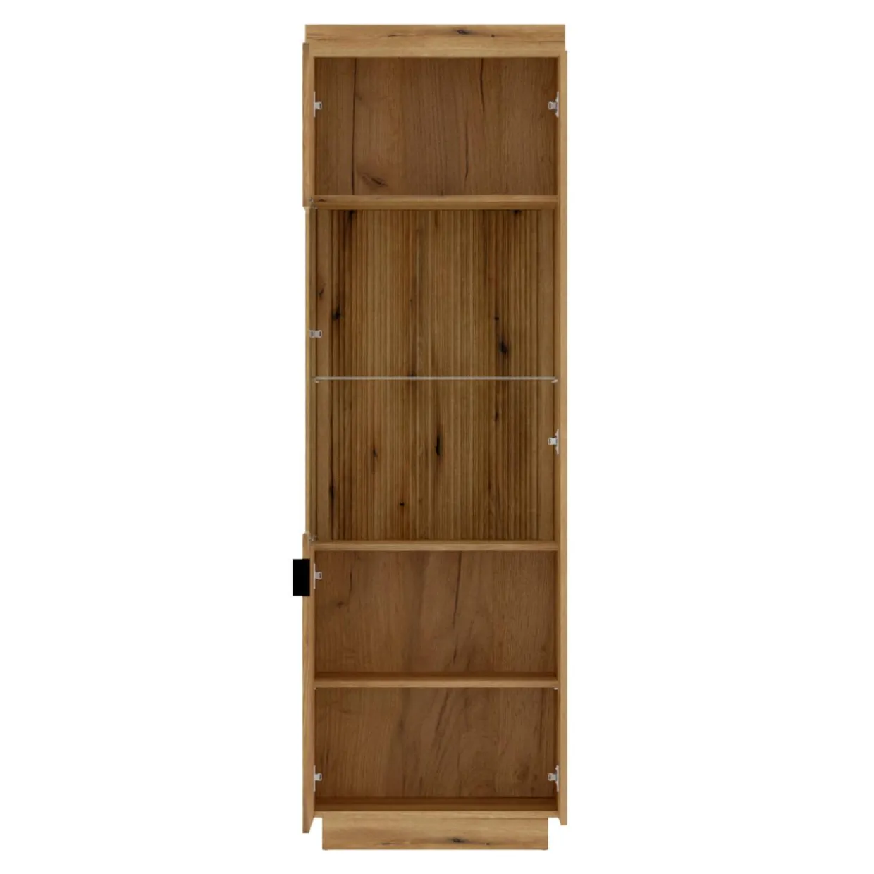 Częściowo szklany front umożliwia wyeksponowanie przedmiotów na 2 półkach.