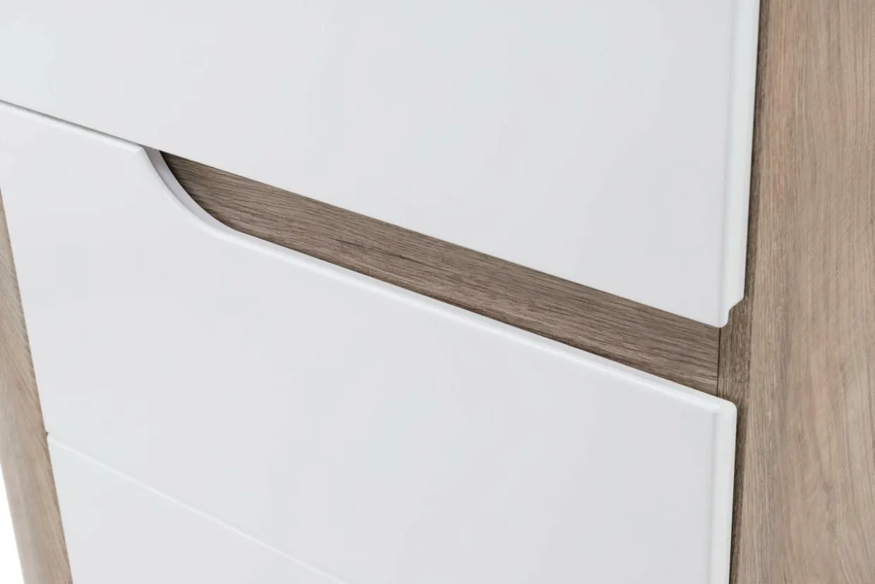 W drzwiach zamontowano zawiasy z systemem cichego domyku, dzięki czemu drzwi nie hałasują podczas zamykania.