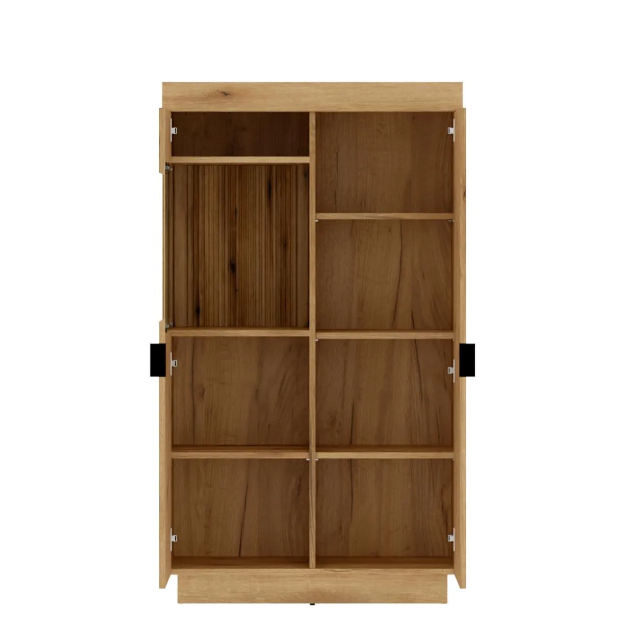 - Witryna posiada w zestawie oświetlenie o ciepłej barwie. Subtelne światło stworzy w salonie prawdziwą wystawę!