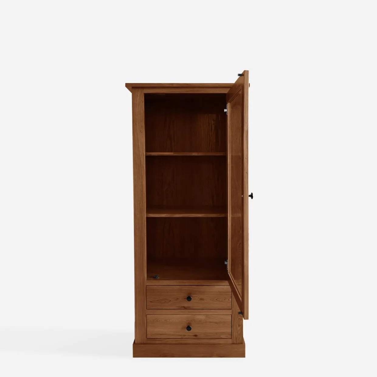 Witryna STELLA – mebel wykonany z litego drewna w kolorze dąb koniakowy. Jej niska wysokość, półki i 2 pojemne szuflady czynią ją idealnym rozwiązaniem do salonu, jadalni lub gabinetu. Prosta forma i klasyczne wykończenie nadają wnętrzu przytulności i ponadczasowego stylu.
