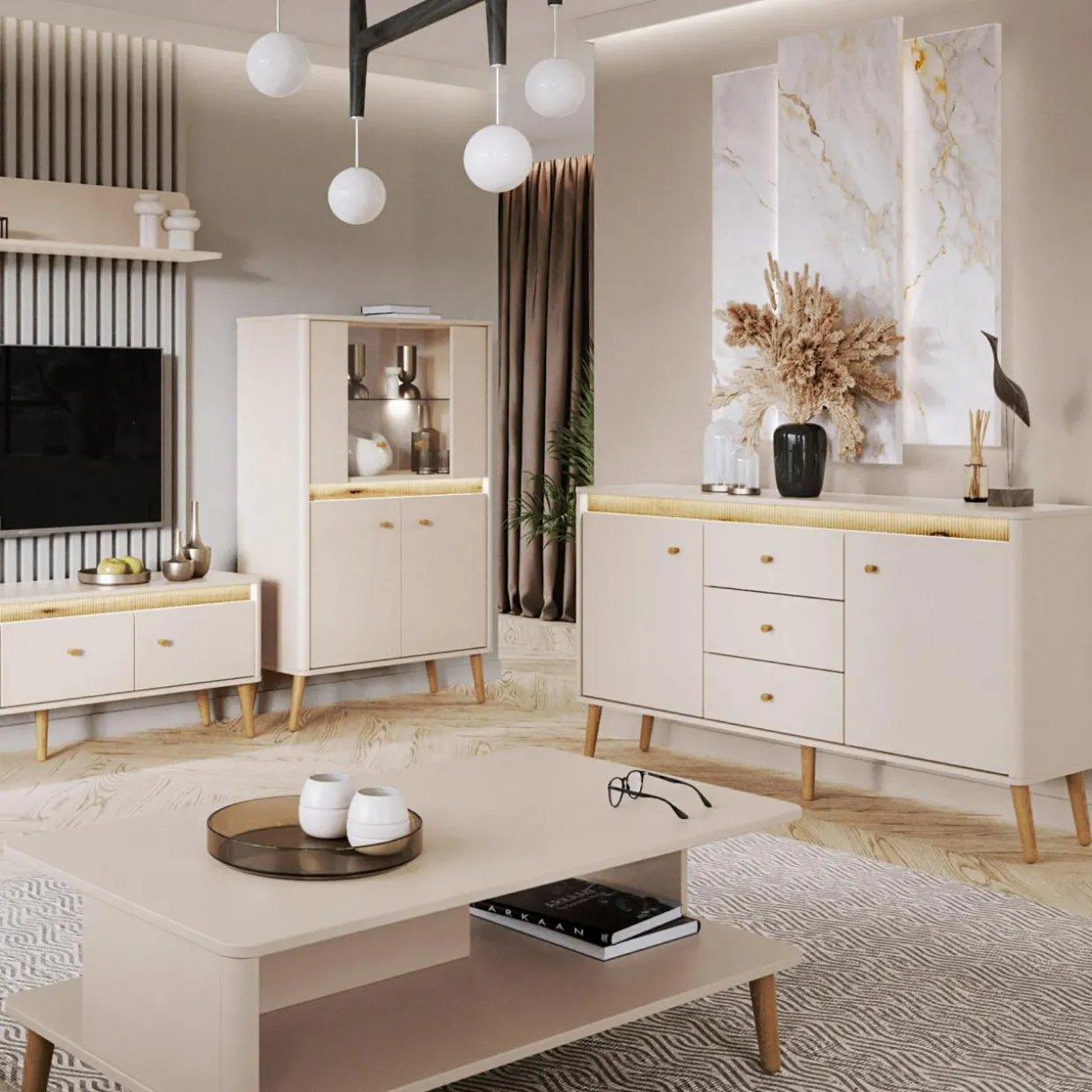 Witryna wąska LORENA z podświetleniem listwy + oświetlenie na półki