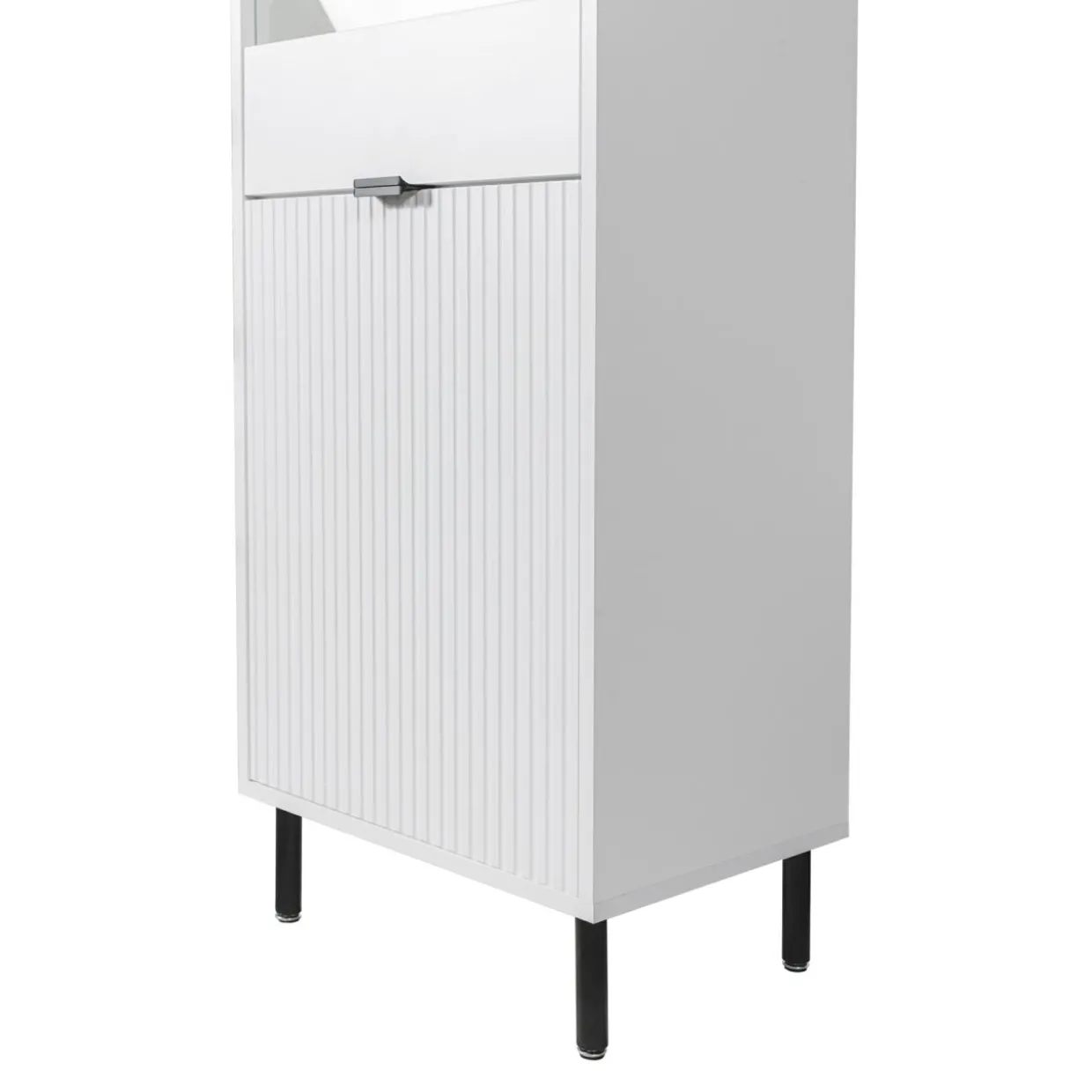 - Folia PCV na ryflowanych frontach zapewnia estetyczne i łatwe w pielęgnacji wykończenie.