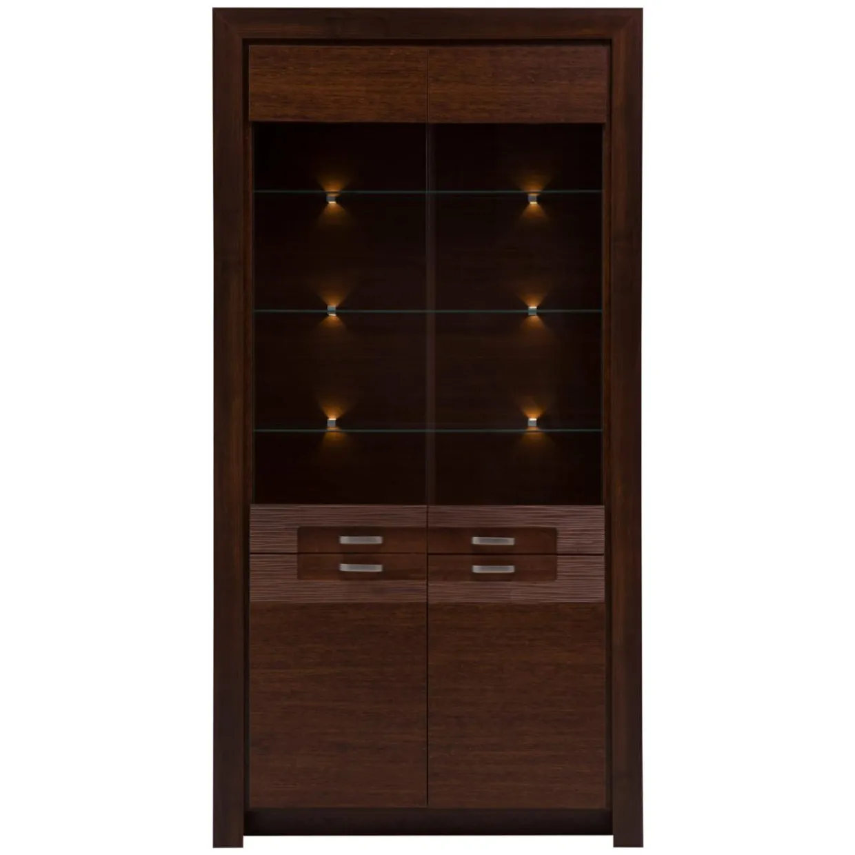 Witryna wysoka ciemny brąz PARIS + oświetlenie