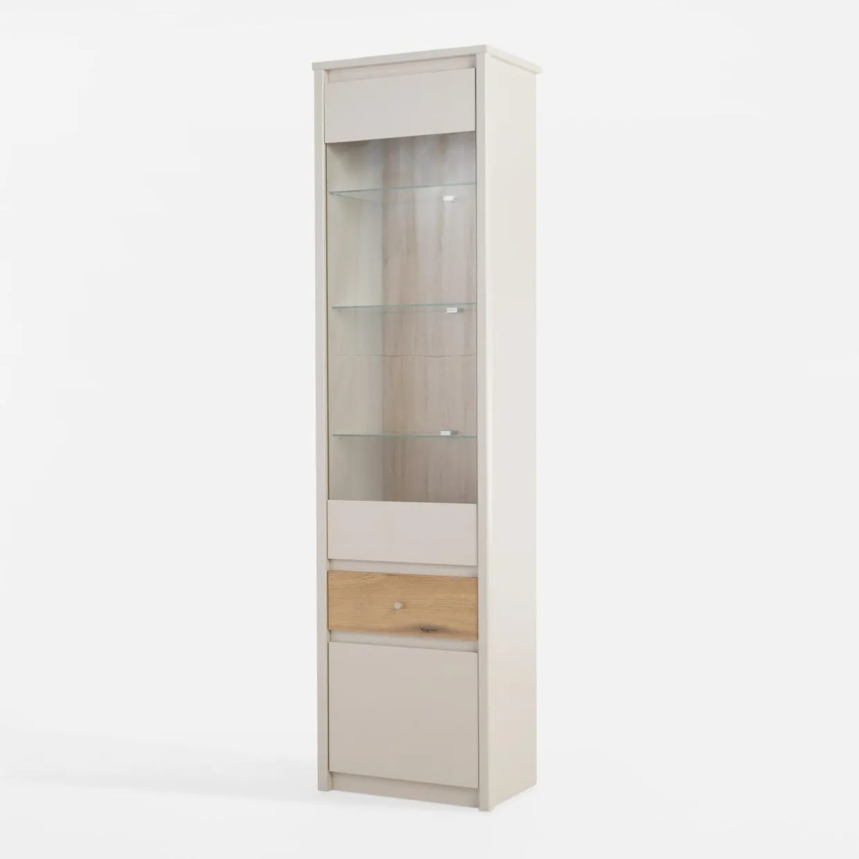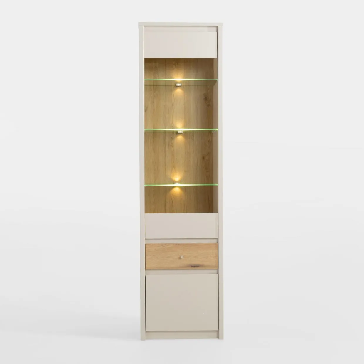 Witryna wysoka KARIN 1D1W1S + Oświetlenie LED 3-pkt DOJO 3D z wył, barwa ciepła