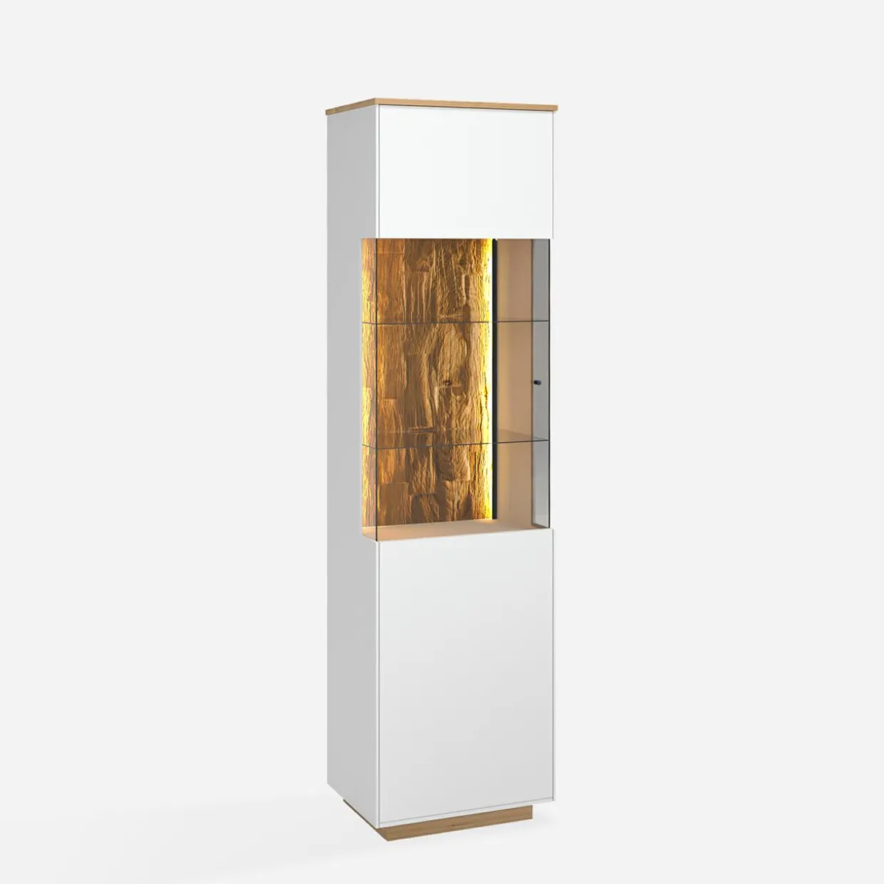 W witrynie BREMEN wyeksponujesz zbiór porcelanowych filiżanek czy zastaw obiadowy za szklaną zabudową. Resztę schowasz w zabudowanej części.