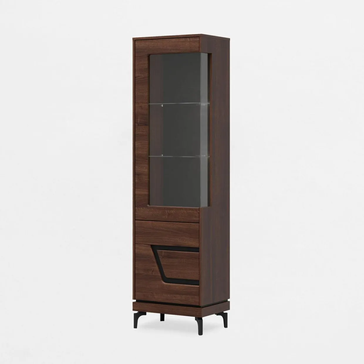 Witryna z czarnym dekorem VERO lewa + oświetlenie LED 2 pkt. białe ciepłe