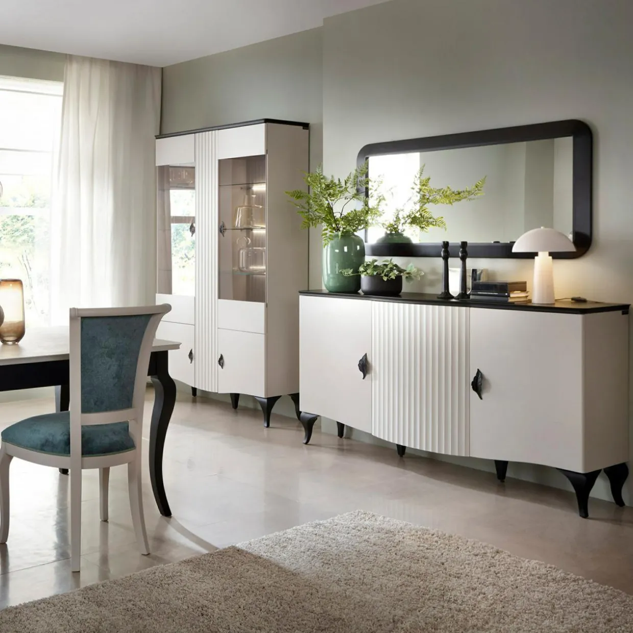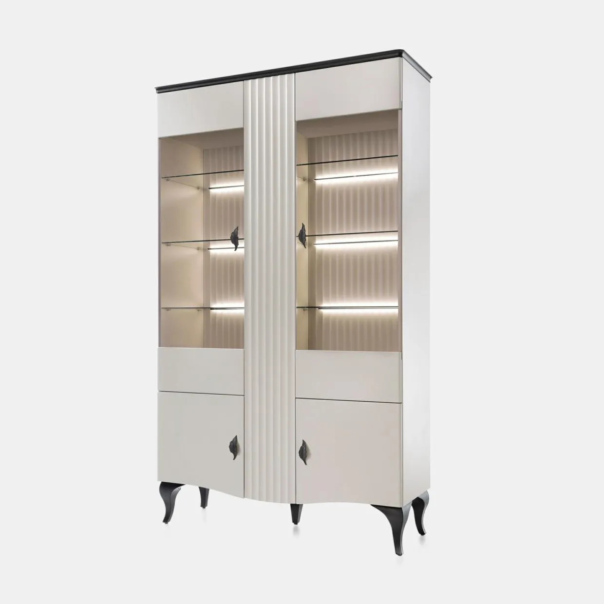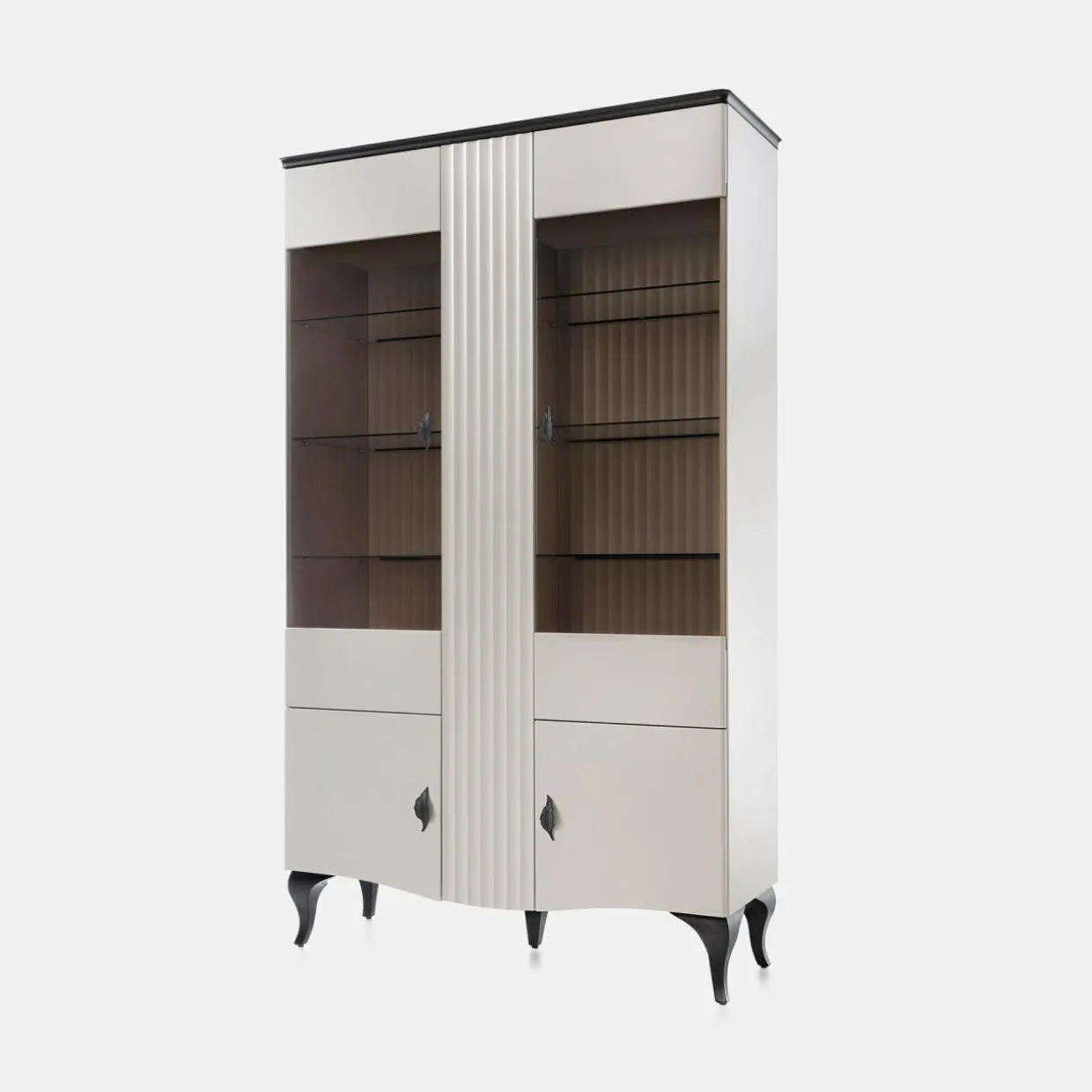 Witryna MADERA wyeksponuje wiele przedmiotów – pamiątki, dekoracje czy porcelanowe naczynia. Wszystko przechowasz w jednym miejscu, za podwójnymi drzwiami.