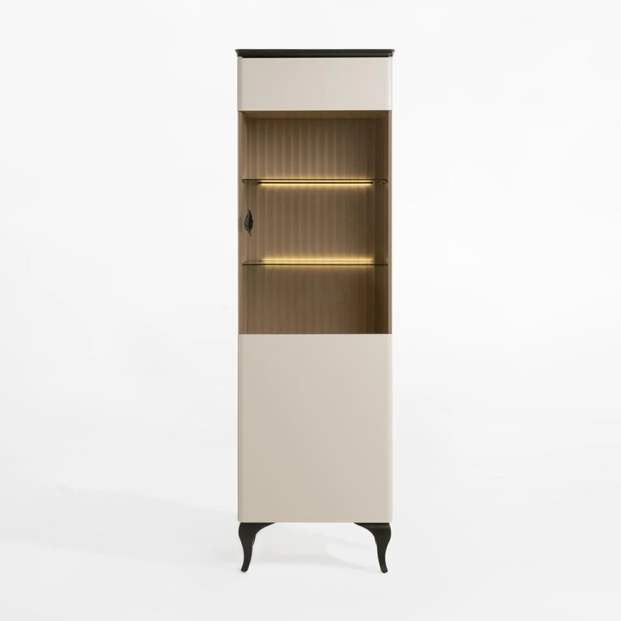Witryna MADERA pomoże Ci wyeksponować pamiątki, dekoracje i porcelanowe filiżanki nawet w niewielkim pomieszczeniu. Wąska i wysoka pomieści najważniejsze dla Ciebie przedmioty.
