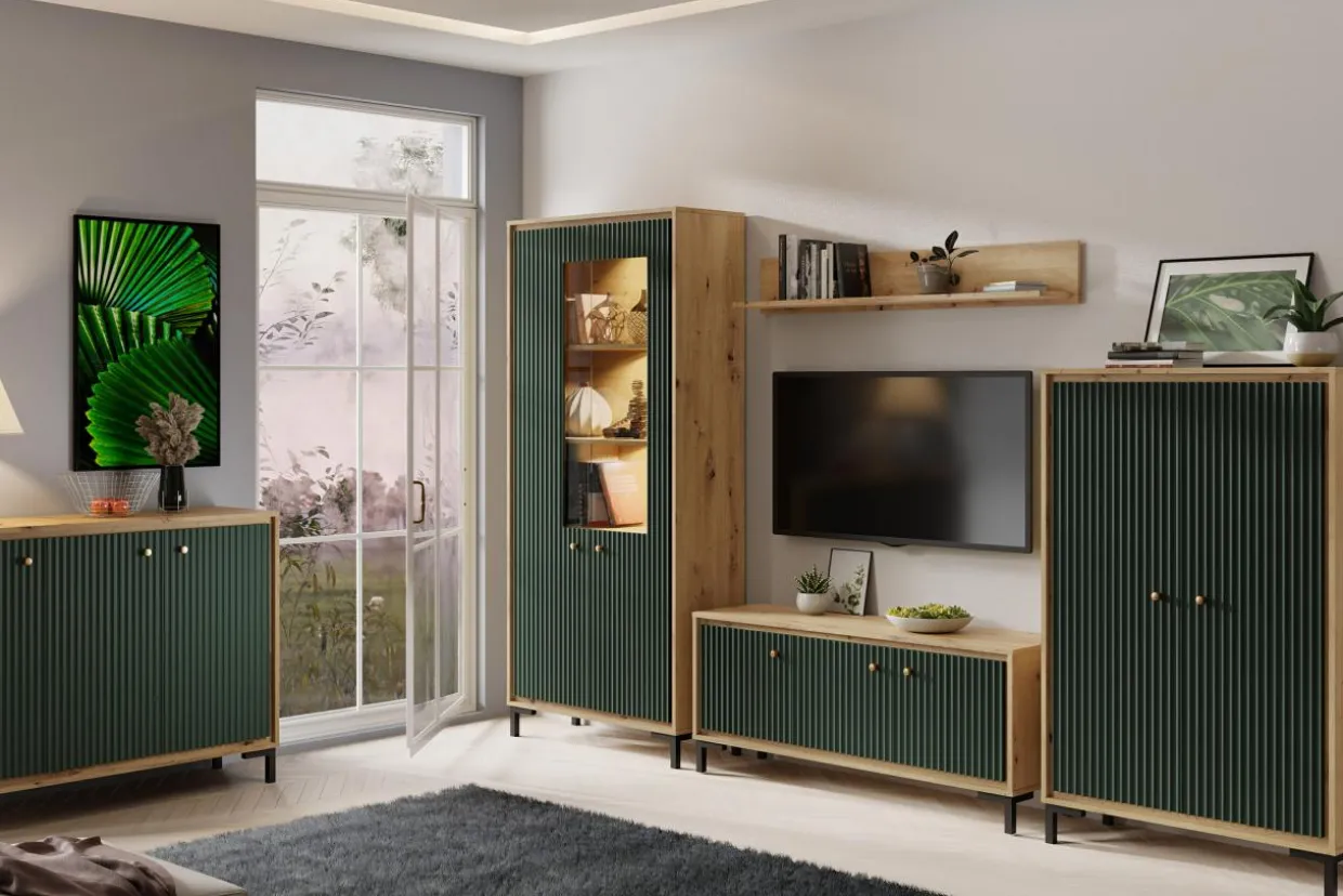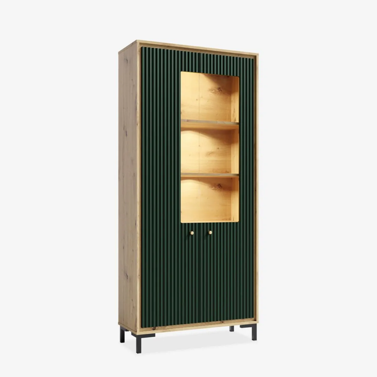 Witryna z oświetleniem PARII butelkowa zieleń