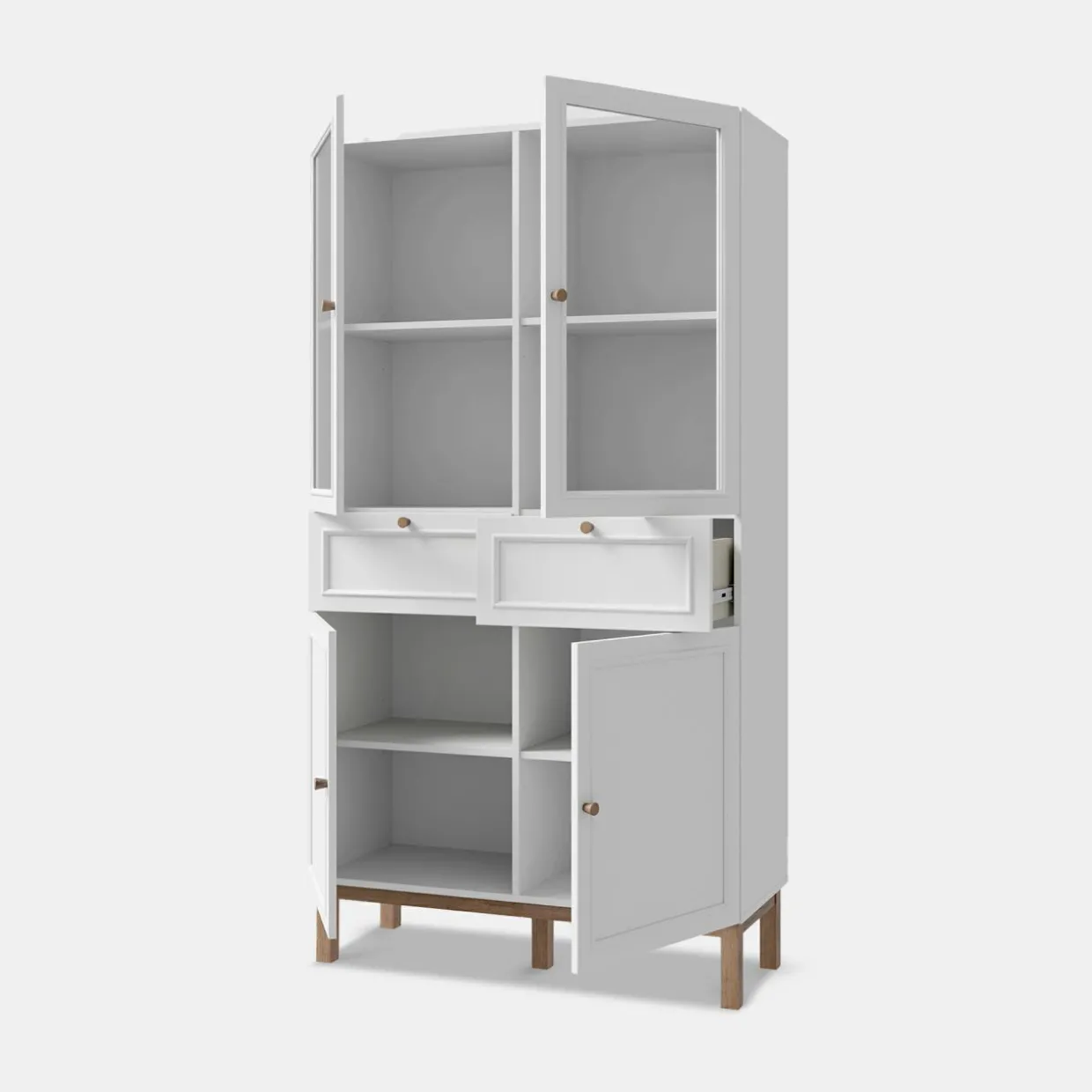 - Na 4 półkach w witrynie wyeksponujesz swoje ulubione pamiątki, dekoracje czy zdobione naczynia.