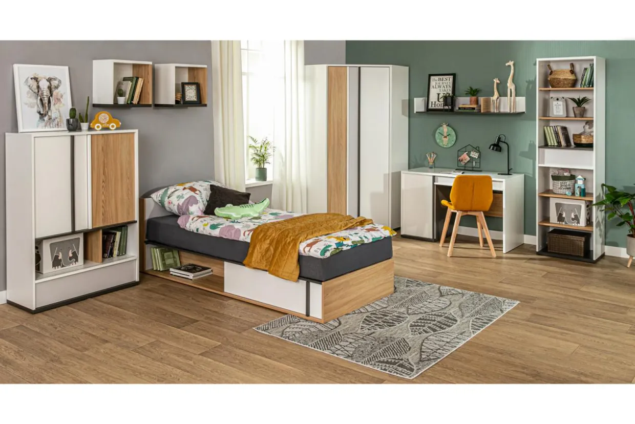 - Meble mają dużo wydzielonych wnęk do przechowywania pamiątek, którymi Twój nastolatek będzie chciał się pochwalić, a także półek za zamkniętymi drzwiami w sam raz do ukrywania skarbów.