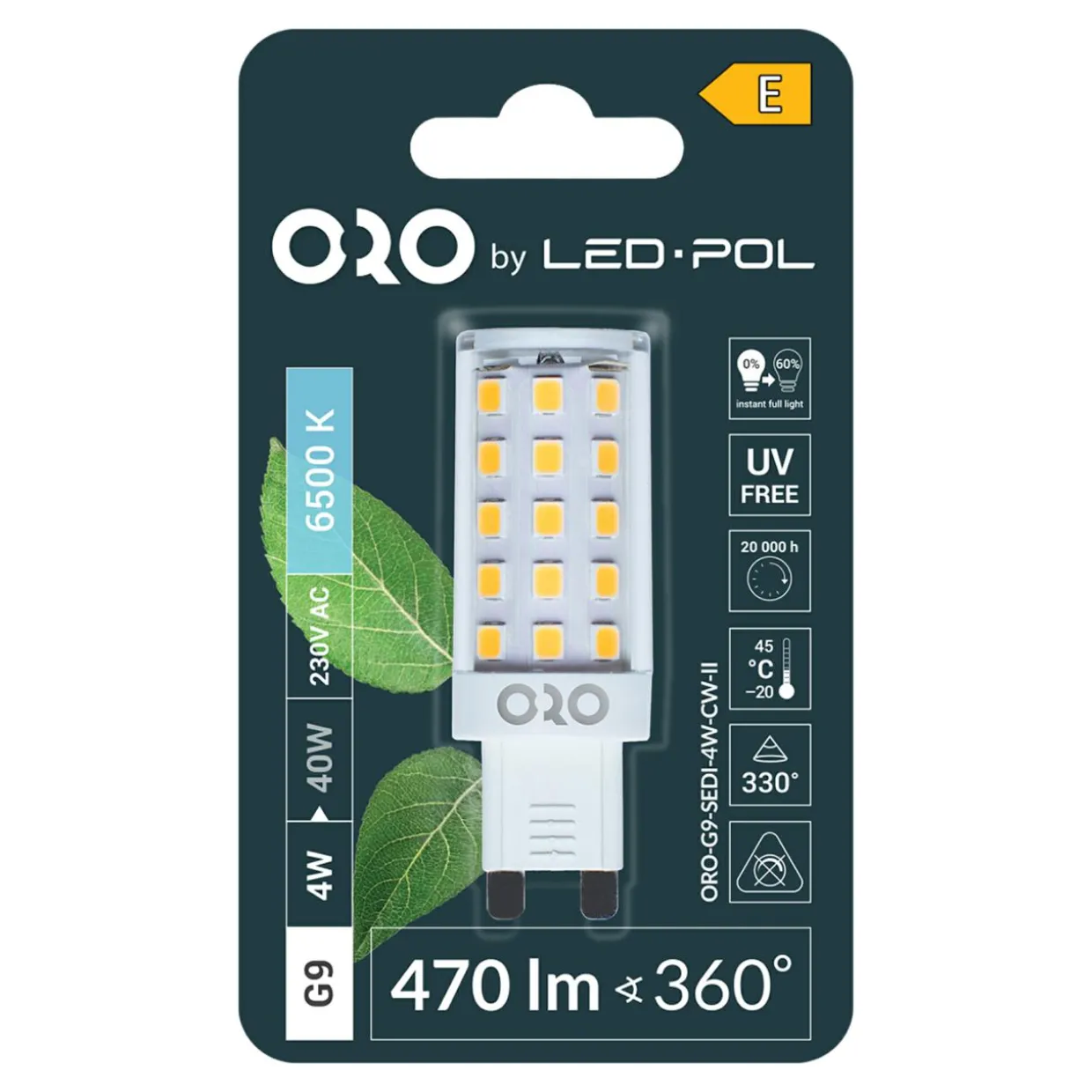 Żarówka ORO-G9-SEDI-4W-DW-II współpracuje z lampami wyposażonymi w oprawkę G9.