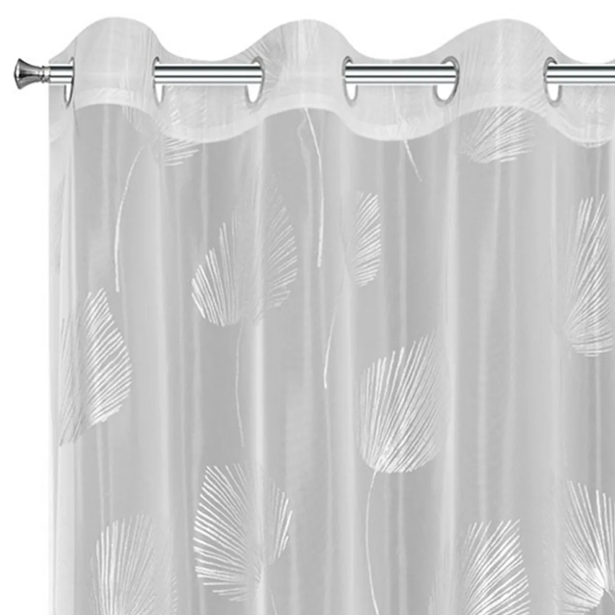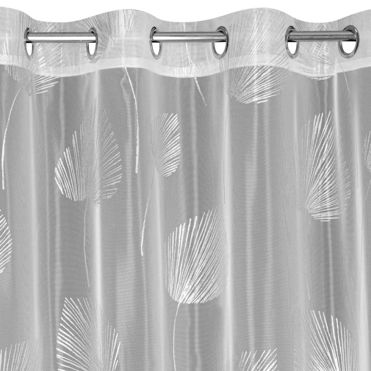 Chcesz dodać wnętrzu świeżości i delikatności? Biało-srebrna zasłona HELEN na przelotkach będzie pięknie się układać oraz wprowadzi do wnętrza wyjątkowy klimat.