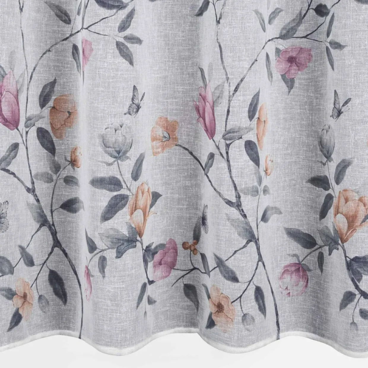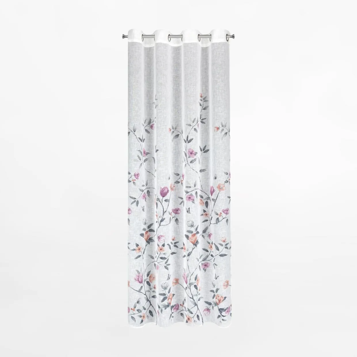 Zasłona na przelotkach ANTEA w różowe kwiaty wprowadzi do wnętrza wiosenną, przytulną atmosferę.