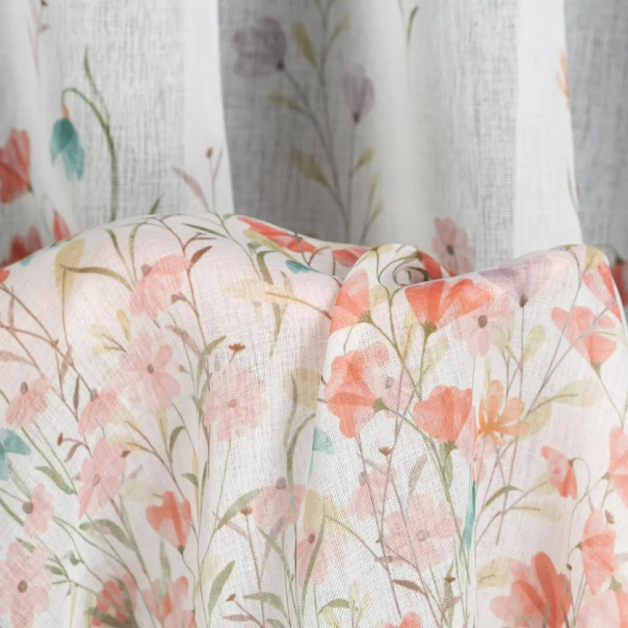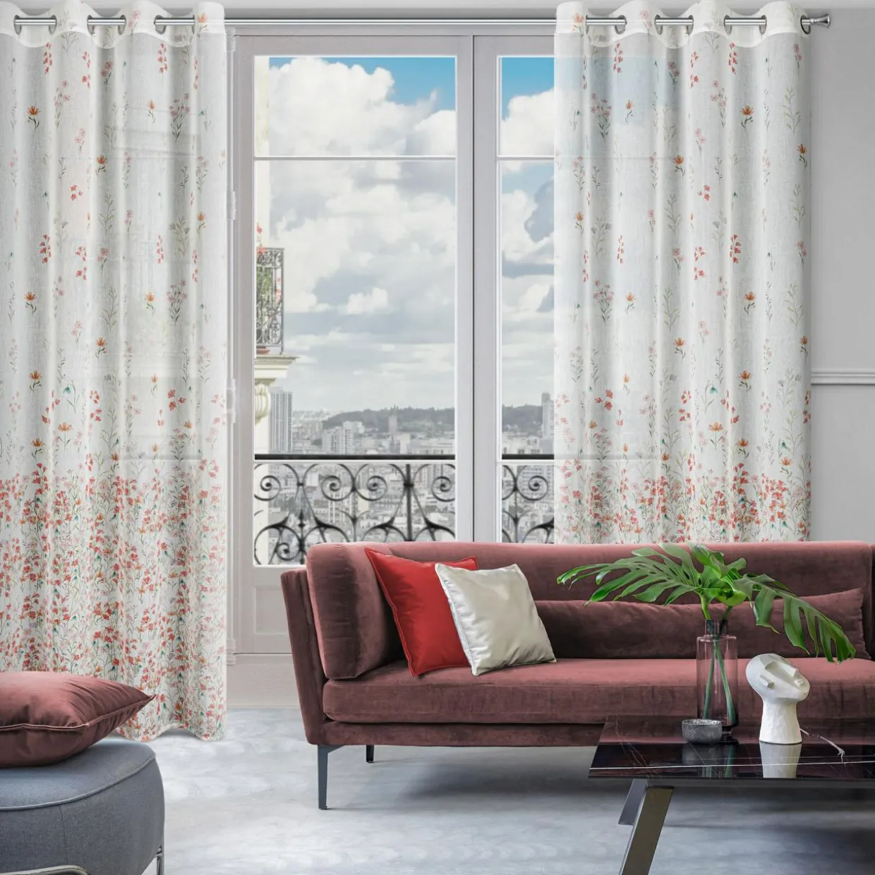 Zasłona na przelotkach SONIA w różowe kwiaty doda wnętrzu wiosennego akcentu.