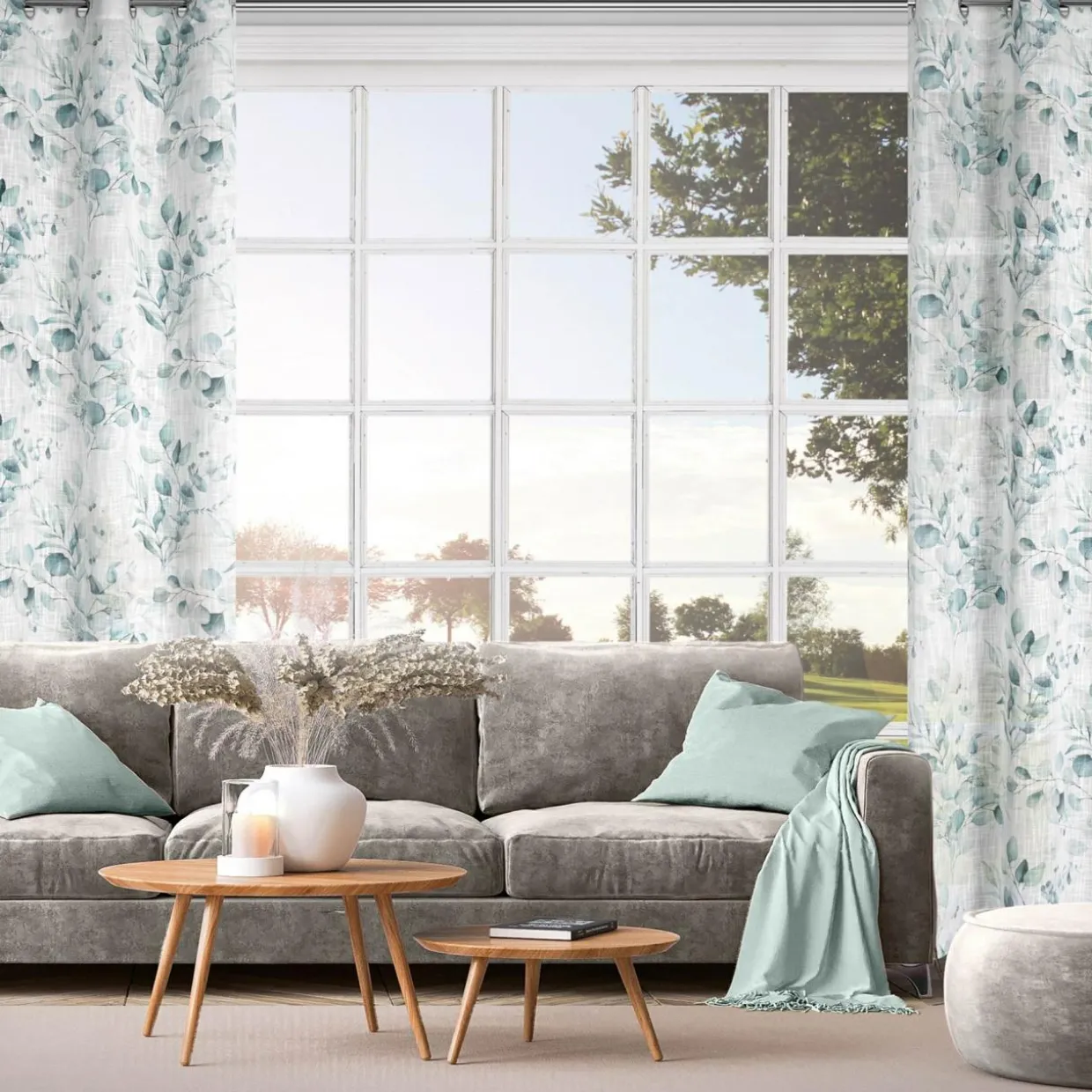 Biało-zielona zasłona SENA z subtelnym roślinnym motywem, to przyjemny dodatek łączący naturę z nowoczesnością.