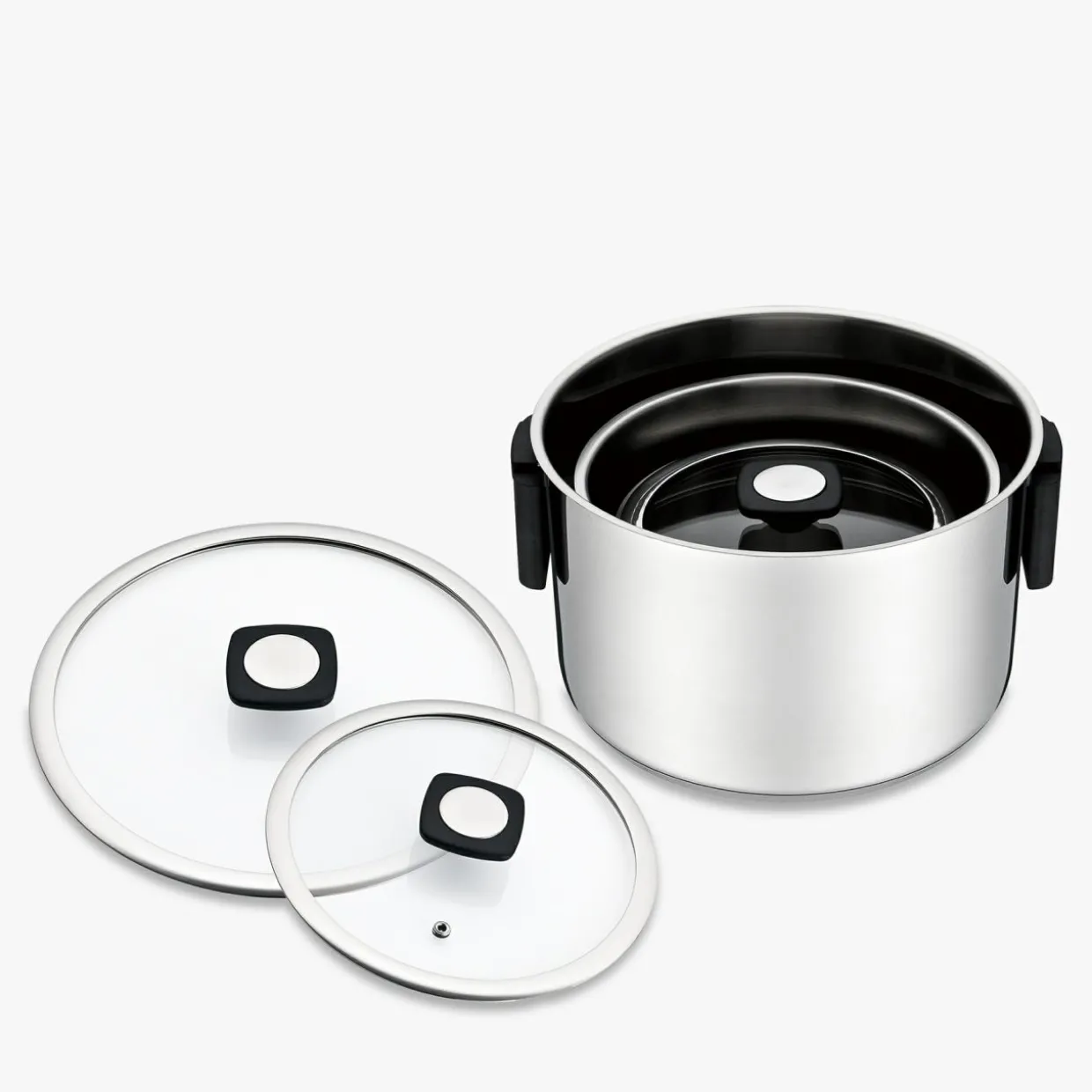 Komplet garnków ze stali nierdzewnej KATO z 5-warstwowym dnem nadają się na wszystkie typy kuchenek, w tym indukcję.