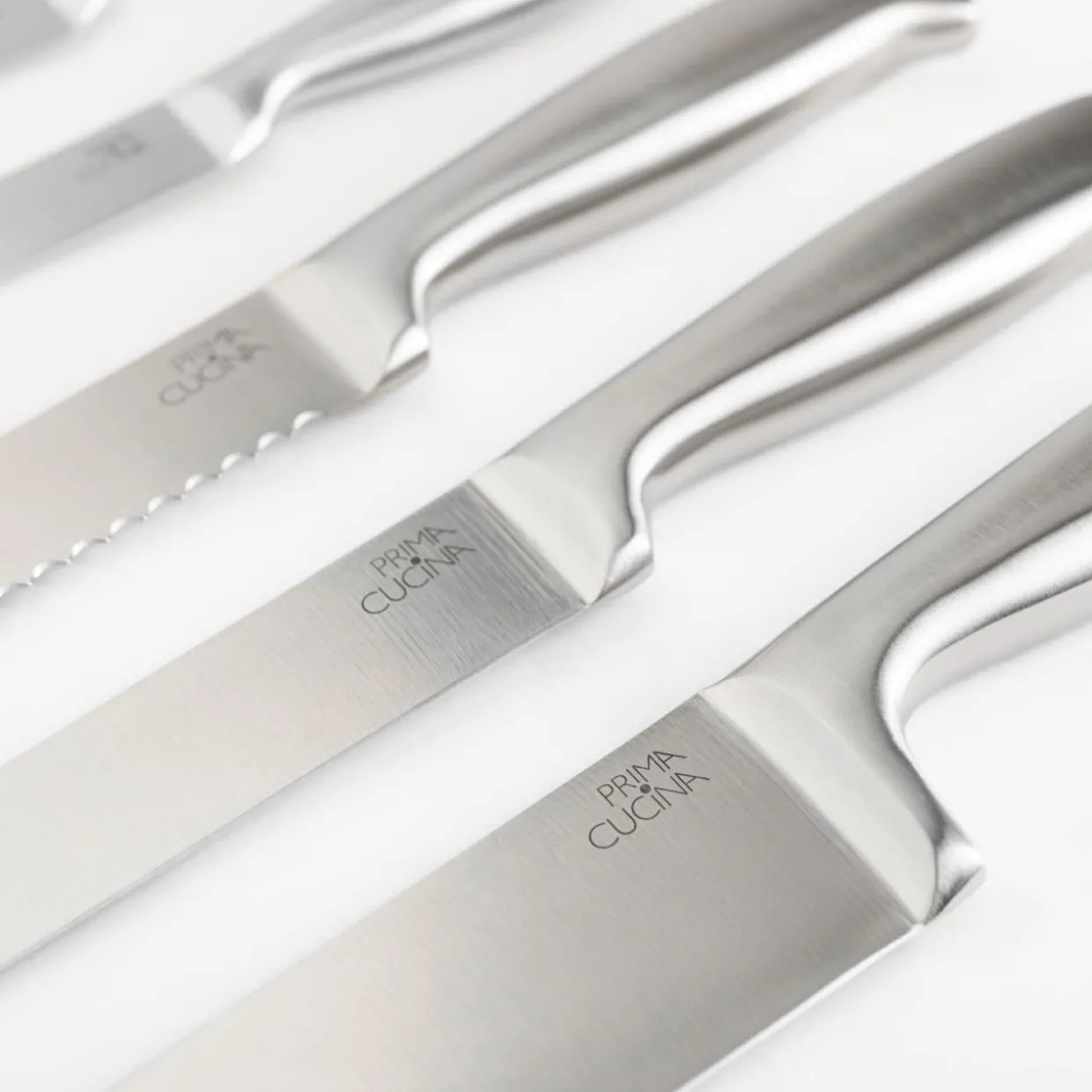 - Noże wykonane są ze stali nierdzewnej odpornej na uszkodzenia.