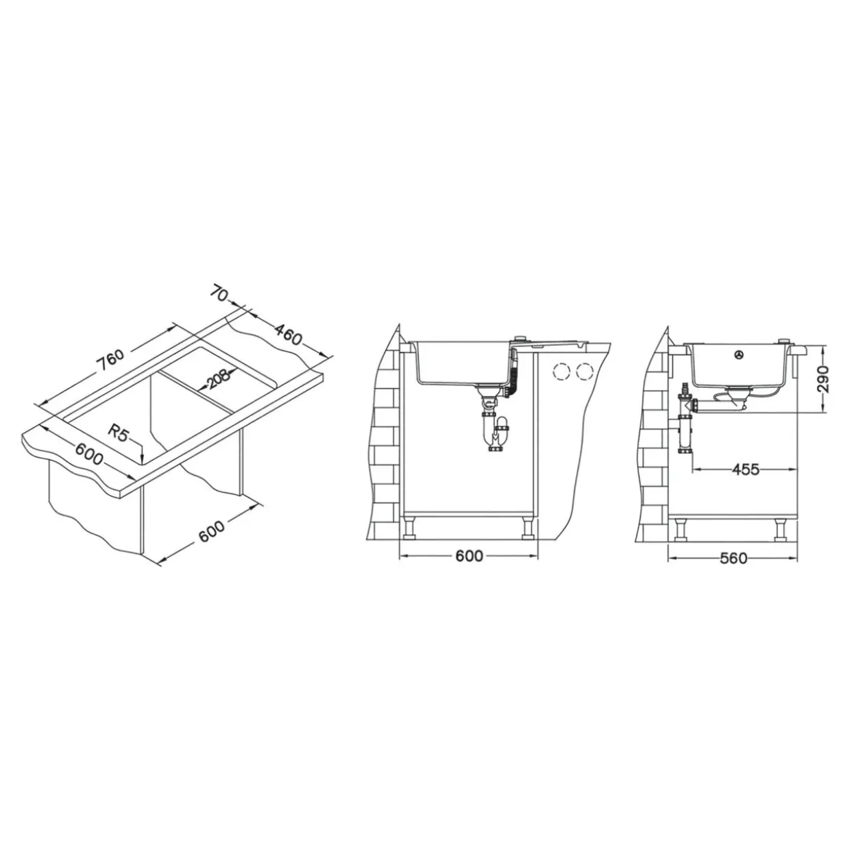 Posiada fabrycznie wykonane otwory ø35 mm na baterię i korek typu POP-UP. Do zlewozmywaka jest również dołączony syfon typu Safe Space. Odpływ – Ø 114.