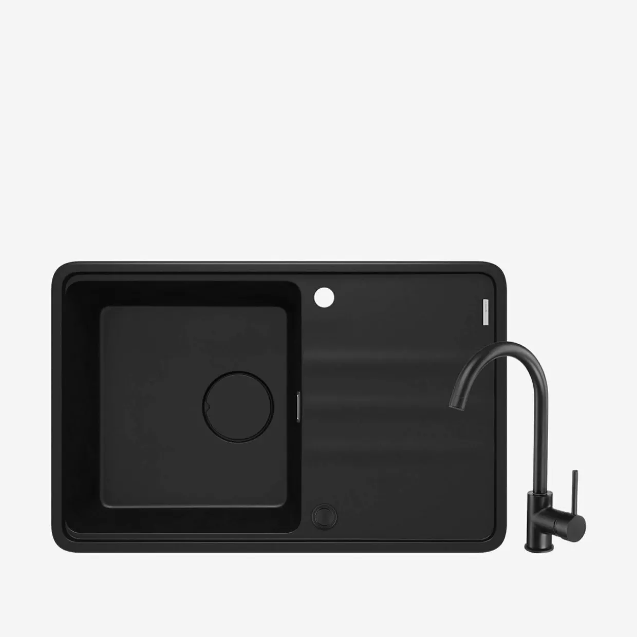 Przeznaczony dla szafki o minimalnej szerokości 60 cm czarny zlewozmywak charakteryzuje się wyjątkowym designem z lekko zaokrąglonymi krawędziami.