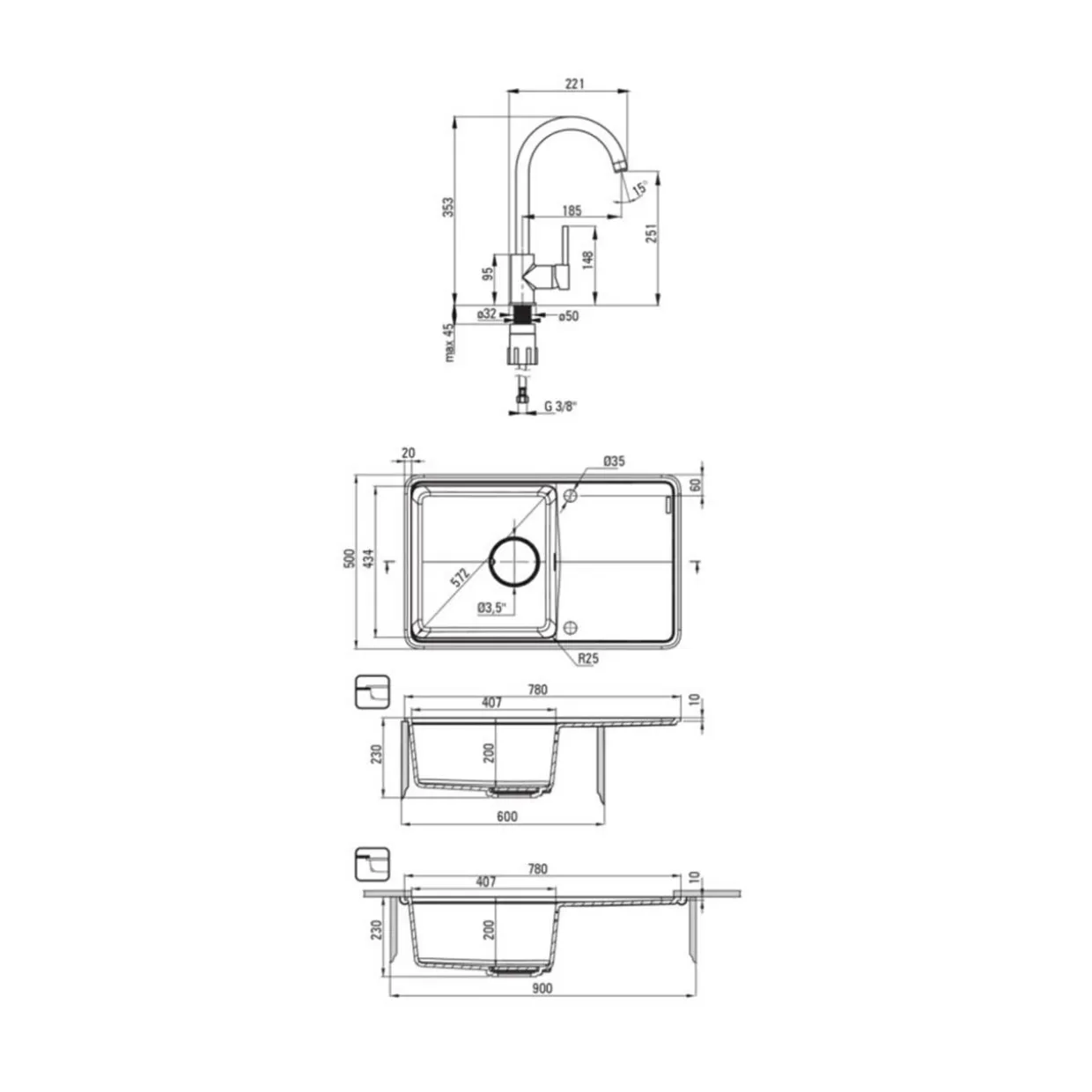- w zestawie ze zlewozmywakiem dostępny jest syfon typu SPACE SAVER.