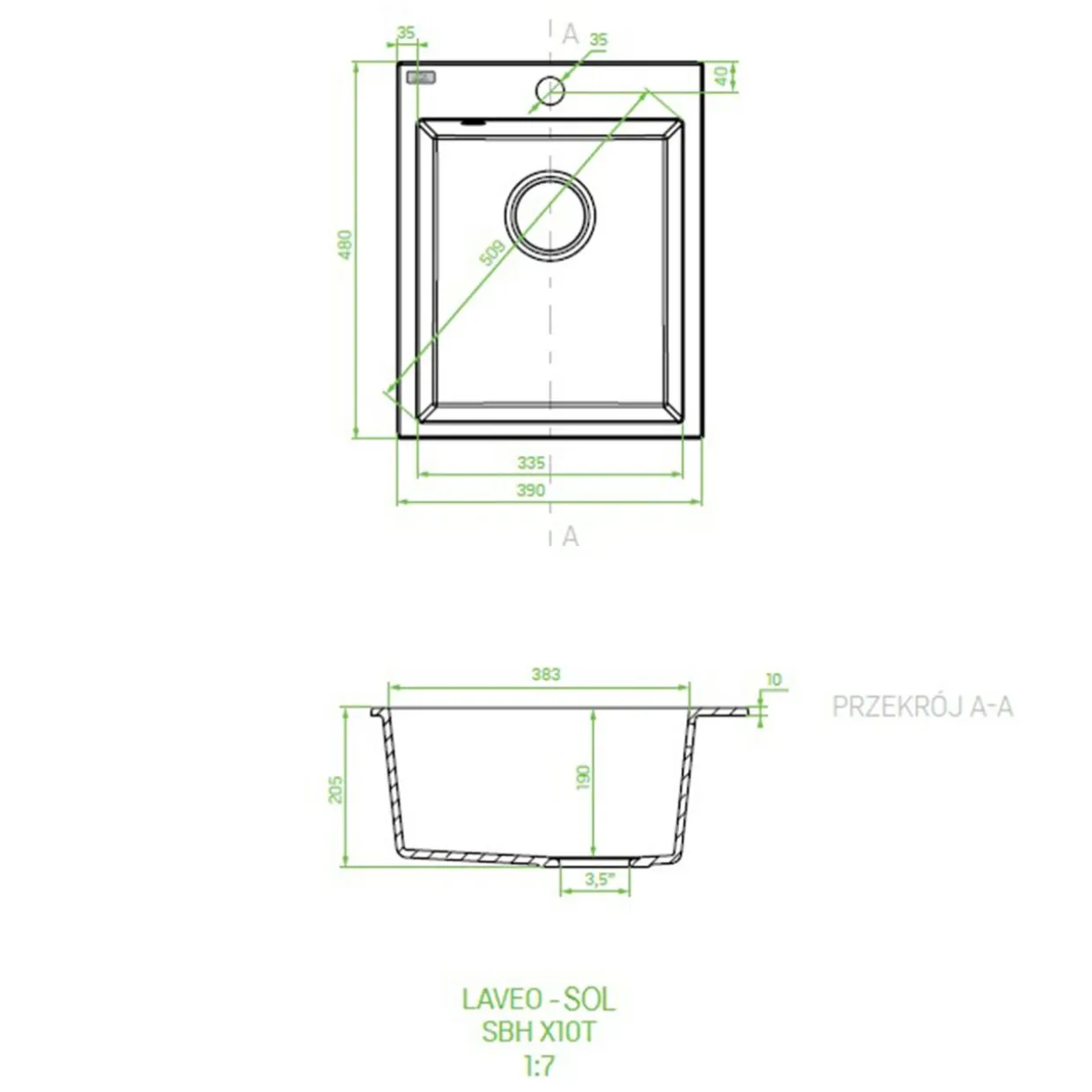 Jego czarny, granitowy kolor nadaje nowoczesny wygląd, a kompaktowy rozmiar sprawia, że pasuje do szafek o minimalnej szerokości 40 cm.