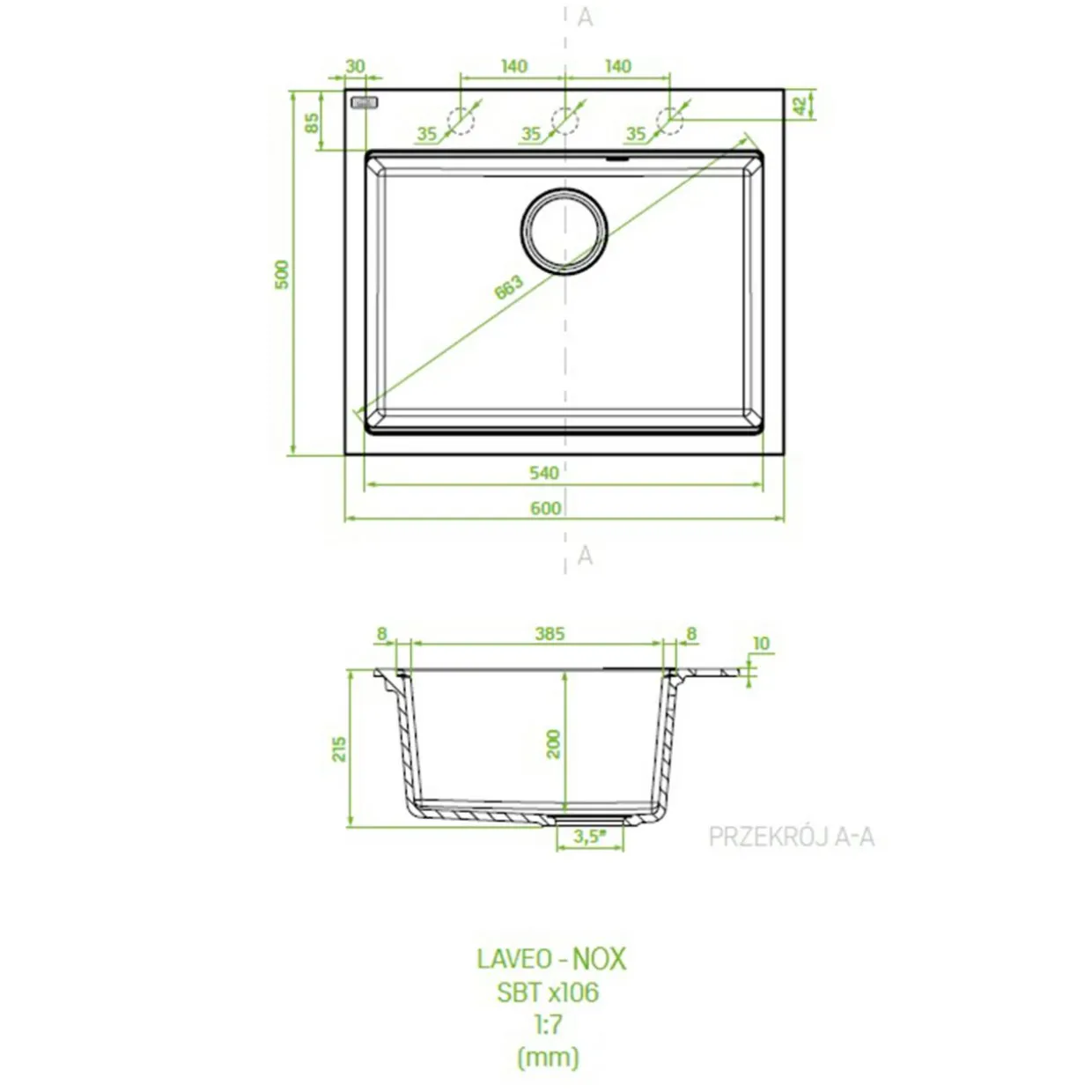 Czarny granitowy kolor nadaje nowoczesny charakter, a przemyślane rozwiązania techniczne umożliwiają łatwe dopasowanie do układu kuchni.