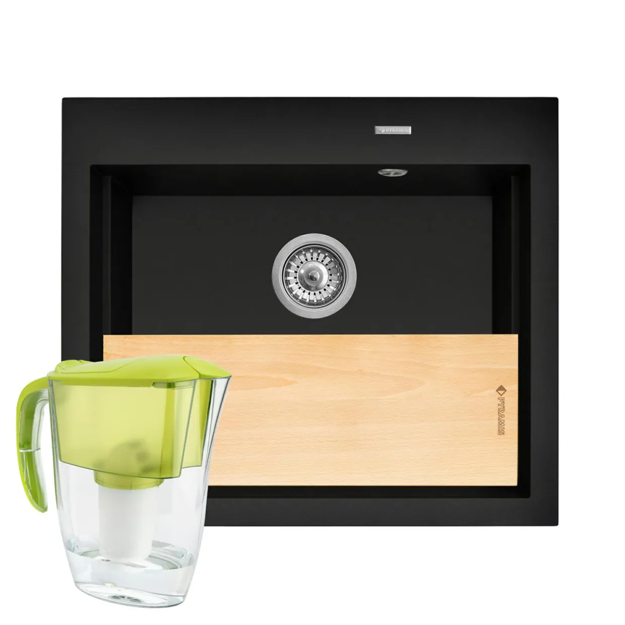 Rant na brzegu zlewu sprawia, że możesz oprzeć na nim deskę podczas krojenia bez ryzyka zachlapania sokiem kuchennego blatu. Dzbanek z filtrem pozwoli Ci pić wodę prosto z kranu.