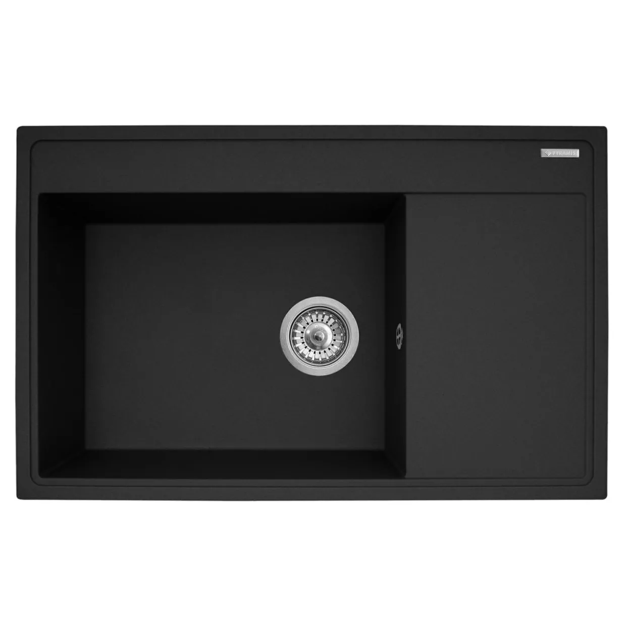 - Jego czarny, lity kolor będzie dobrze wyglądał w otoczeniu bieli, szarości oraz blatów o kamiennym wzorze i kolorze.