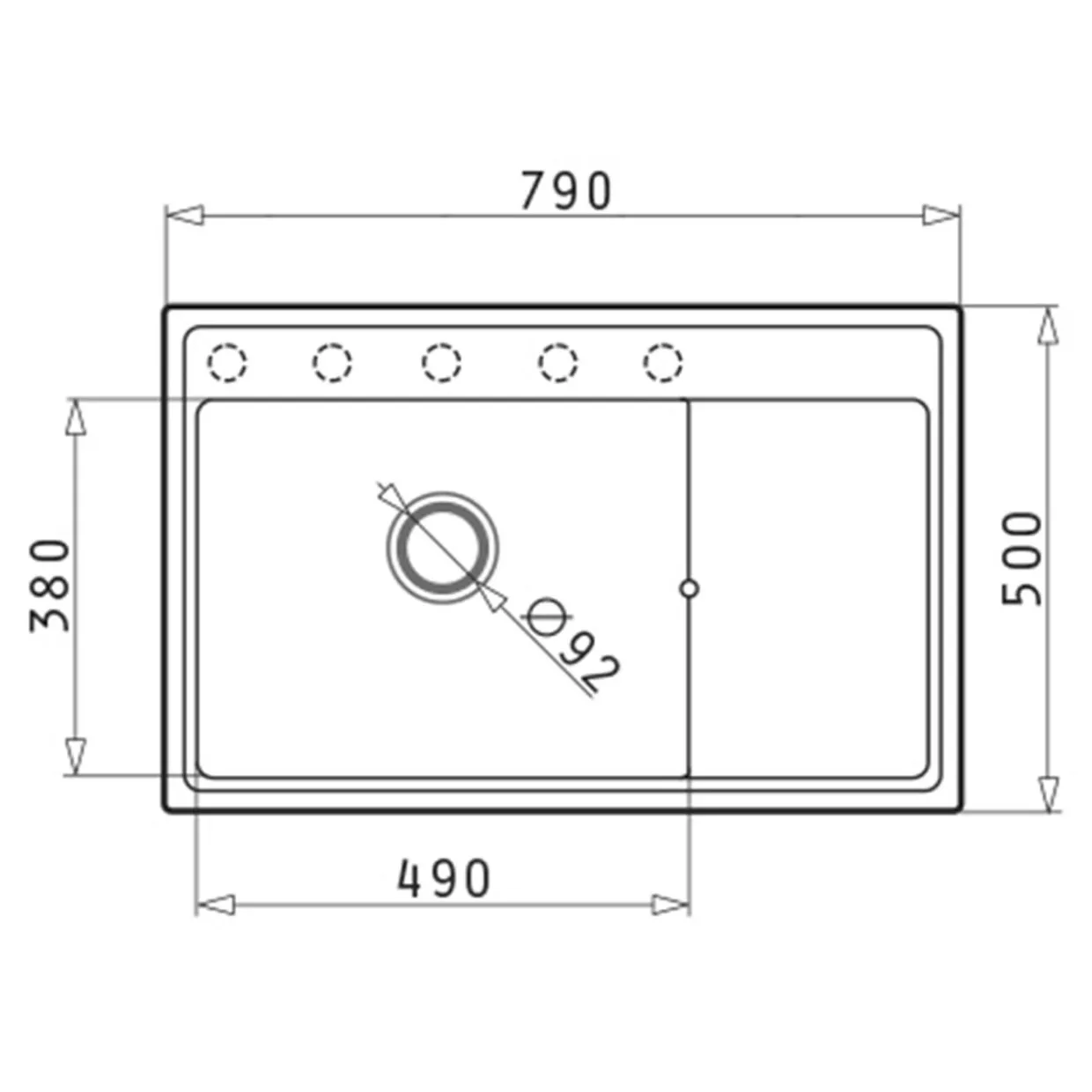 Zlewozmywak ARES posiada 5 podwiertów technologicznych, dzięki którym możesz zamontować baterię w miejscu, najodpowiedniejszym dla rozkładu swojej kuchni. Otwory możesz wykorzystać również do akcesoriów, takich jak dozownik płynu.