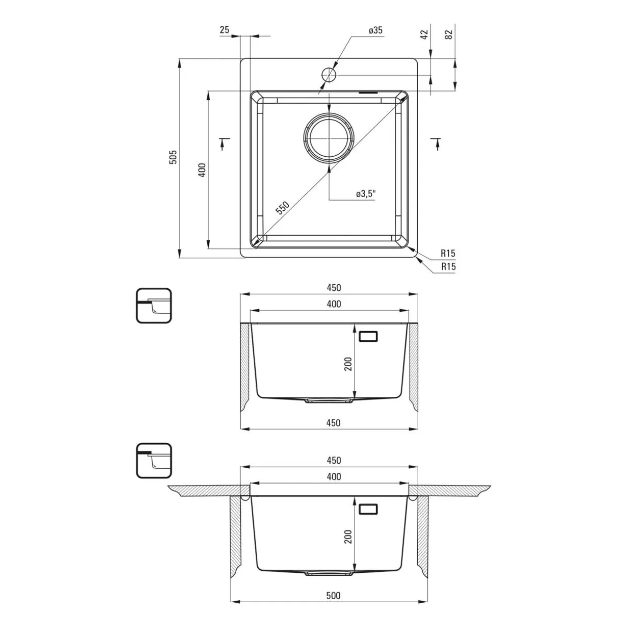 - zlewozmywak OLFATO 45×50,5 cm