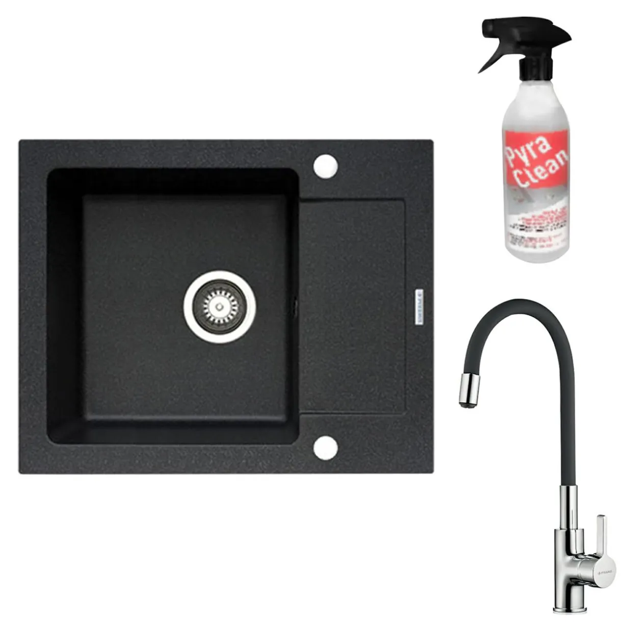 Dodatkowo w zestawie z nim otrzymujesz preparat Pyra Clean do czyszczenia zlewozmywaków granitowych.