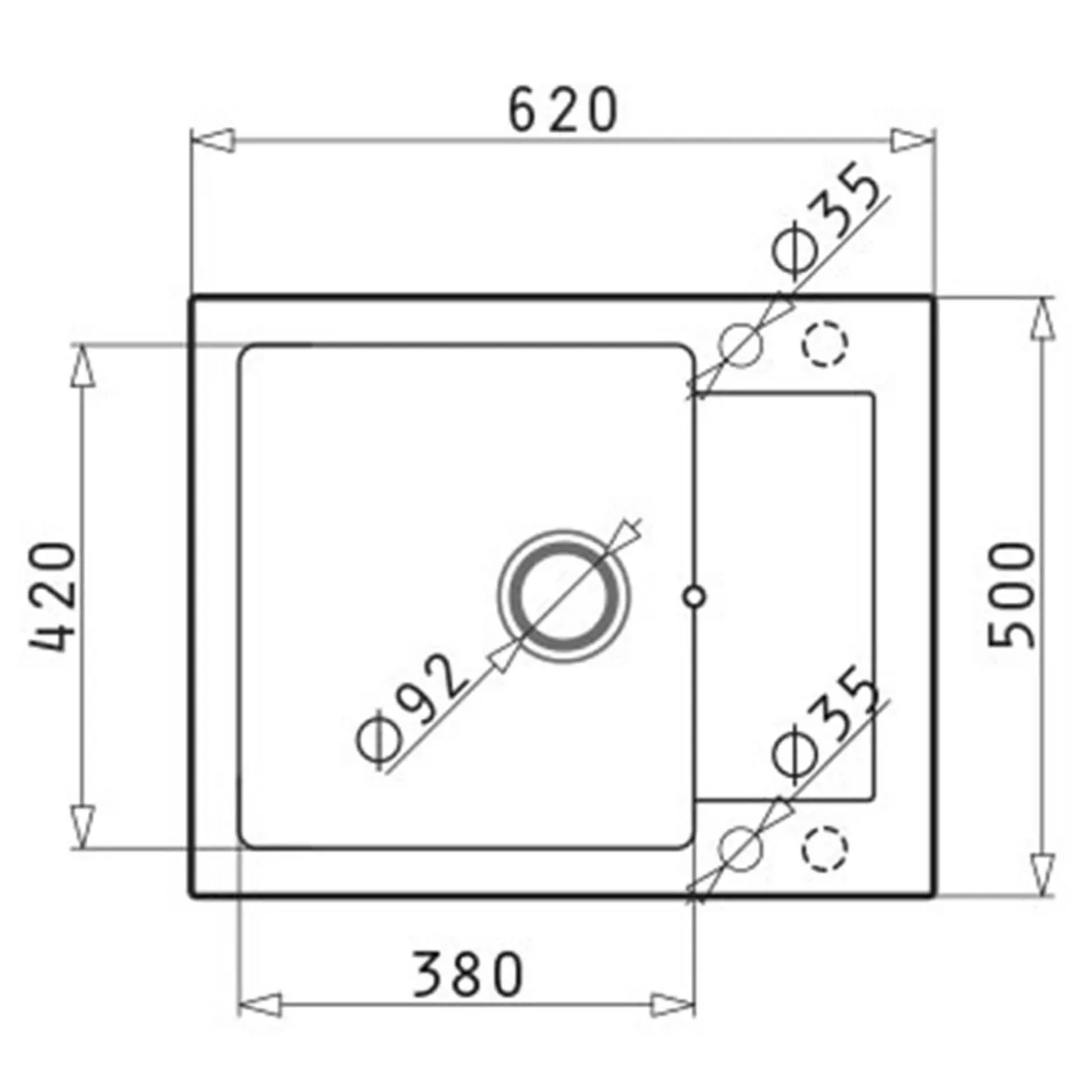- zlewozmywak ZEFIR 62×50 cm,