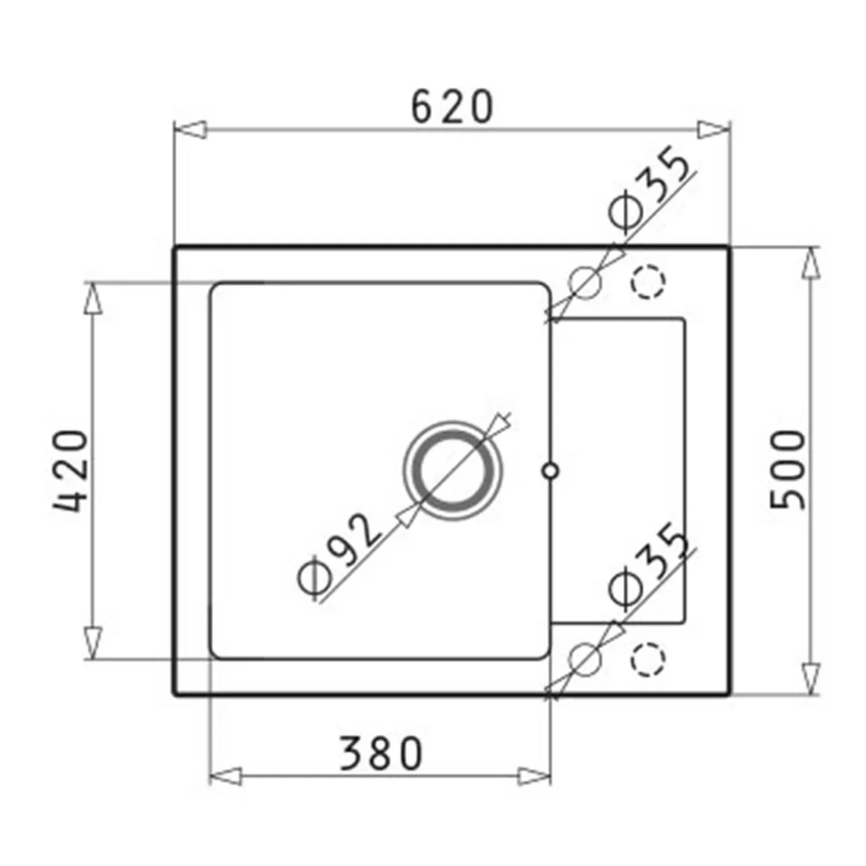 - zlewozmywak ZEFIR 62×50 cm,