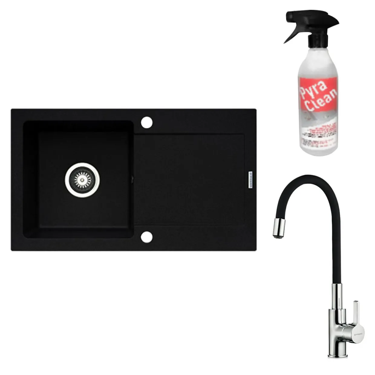 Dodatkowo w zestawie otrzymujesz preparat Pyra Clean do czyszczenia zlewozmywaków granitowych.
