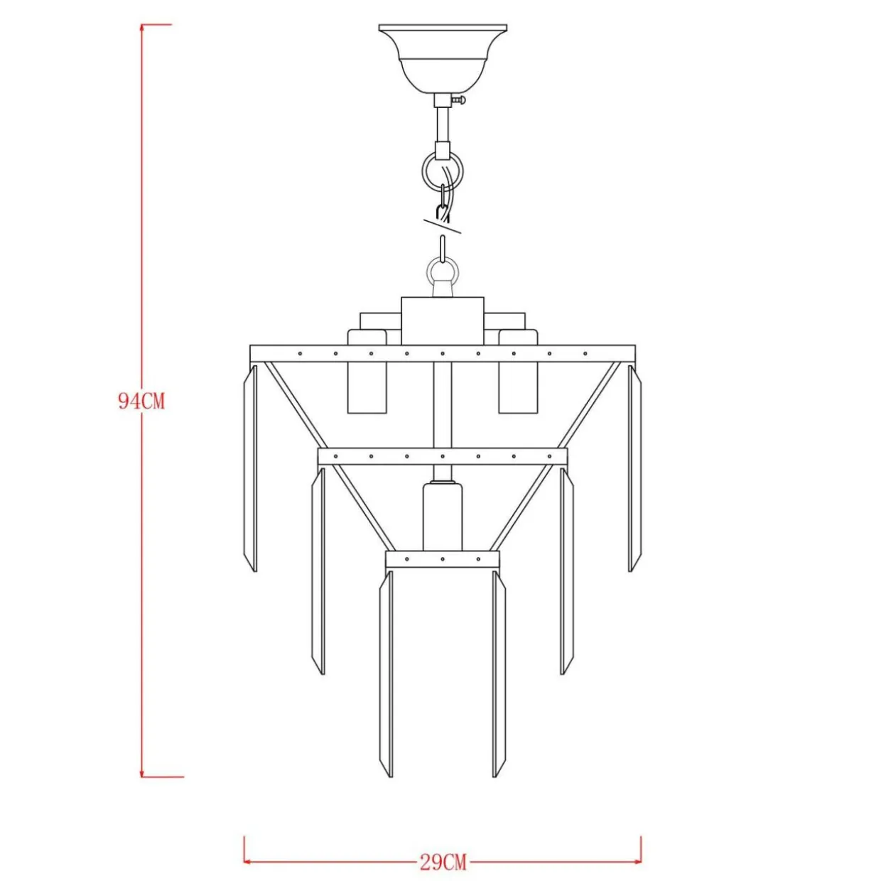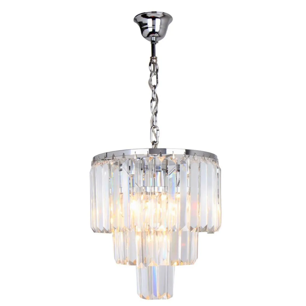 Uwagę zwracają przede wszystkim dekoracyjne walory lampy. Szklane kryształki zawieszone na metalowej podstawie uformowane są w czterech okręgach na wzór kaskady – od największego do najmniejszego. Całość tworzy ciekawe wrażenie estetyczne. Natomiast po zapaleniu światła lampa ozdabia sufit i ściany urokliwymi refleksami.