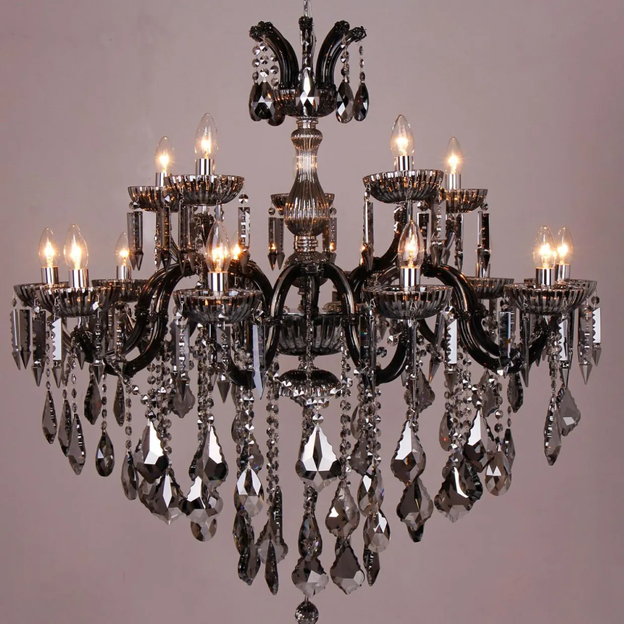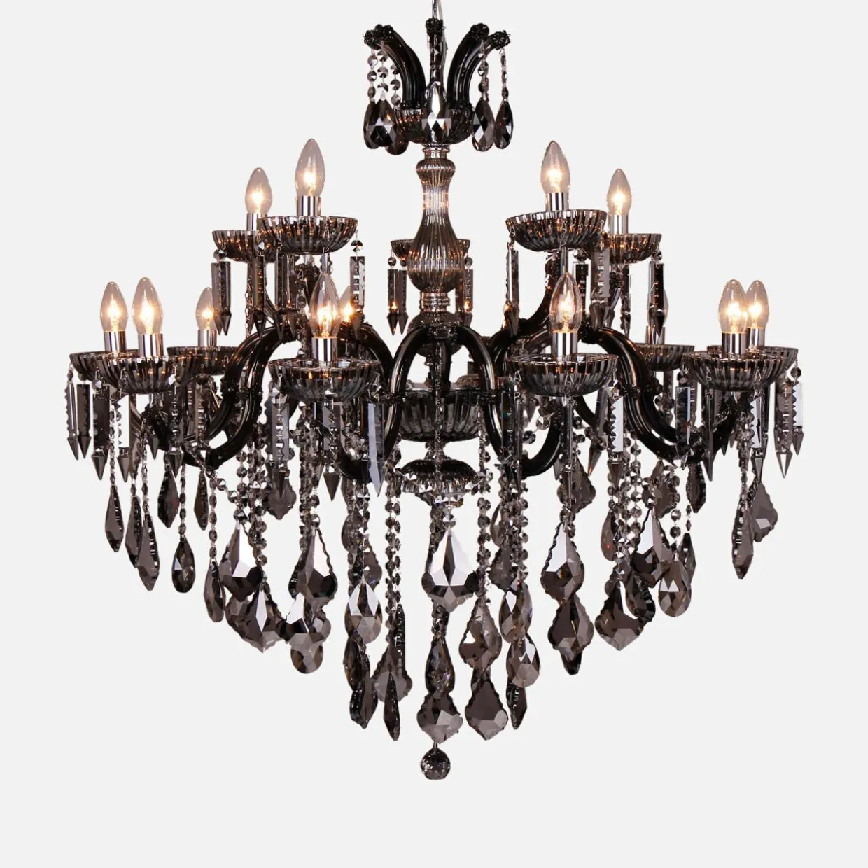 Misternie wykonane elementy dekoracyjne świetnie oddają ducha minionej epoki, a światło efektownie załamuje się na licznych kryształkach oraz połyskującej ciemnym chromem podstawie.