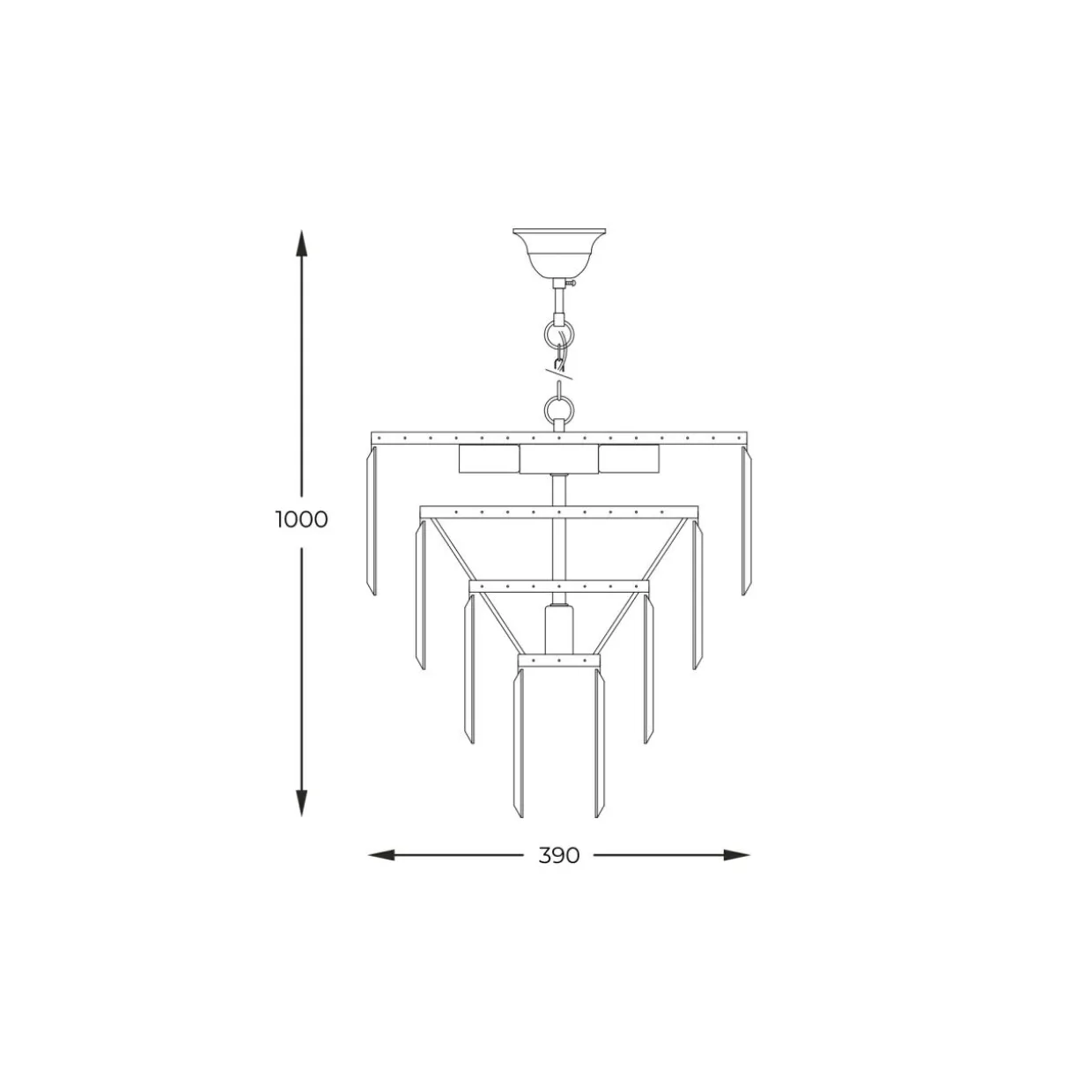 Uwagę zwracają przede wszystkim dekoracyjne walory lampy. Szklane kryształki zawieszone na metalowej podstawie uformowane są w czterech okręgach na wzór kaskady – od największego do najmniejszego. Całość tworzy ciekawe wrażenie estetyczne. Natomiast po zapaleniu światła lampa ozdabia sufit i ściany urokliwymi refleksami.