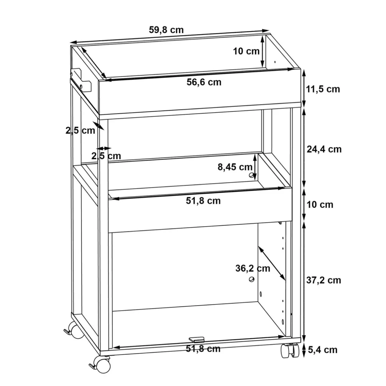 - Podstawą szafki barowej są 4 kółka. Bez większego wysiłku przemieścisz barek z kuchni do jadalni czy salonu.