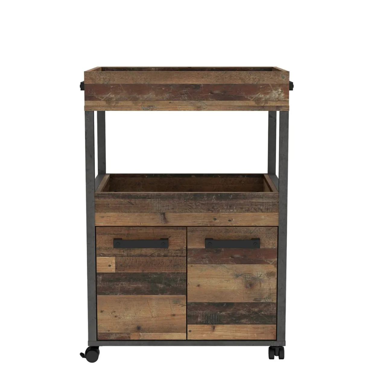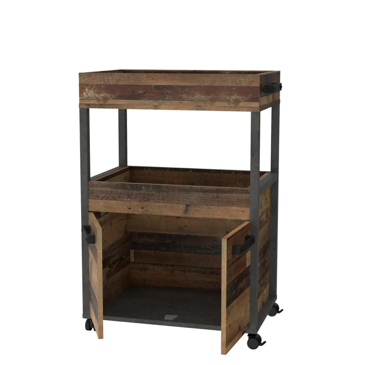 - Wykończenie imitujące naturalne drewno z efektem postarzenia podkreśla efektowny design mebla, nawiązujący do stylu vintage.