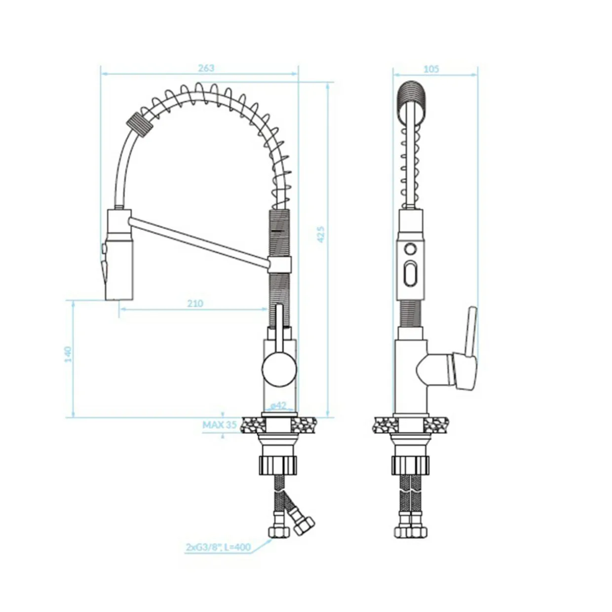 - 3 tryby strumienia – ułatwiające różne czynności, takie jak mycie naczyń, opłukiwanie produktów czy napełnianie garnków.